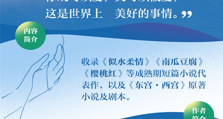 经典短篇小说集,收录《似水柔情》《南瓜豆腐》《樱桃红》等成熟期短篇小说代表作。这些作品充满肆意的想象力、幽默的调侃以及在现实基础上的变形,极具风格化,体现了日臻成熟的文学理念和小说技巧,读来酣畅淋漓,令人拍案叫绝。同时收录阿根廷马塔布拉塔电影节*编剧奖《东宫·西宫》原著小说及电影剧本、舞台剧剧本。