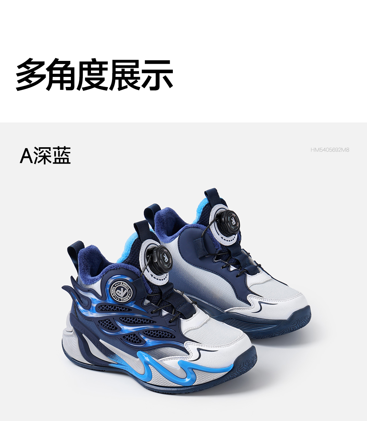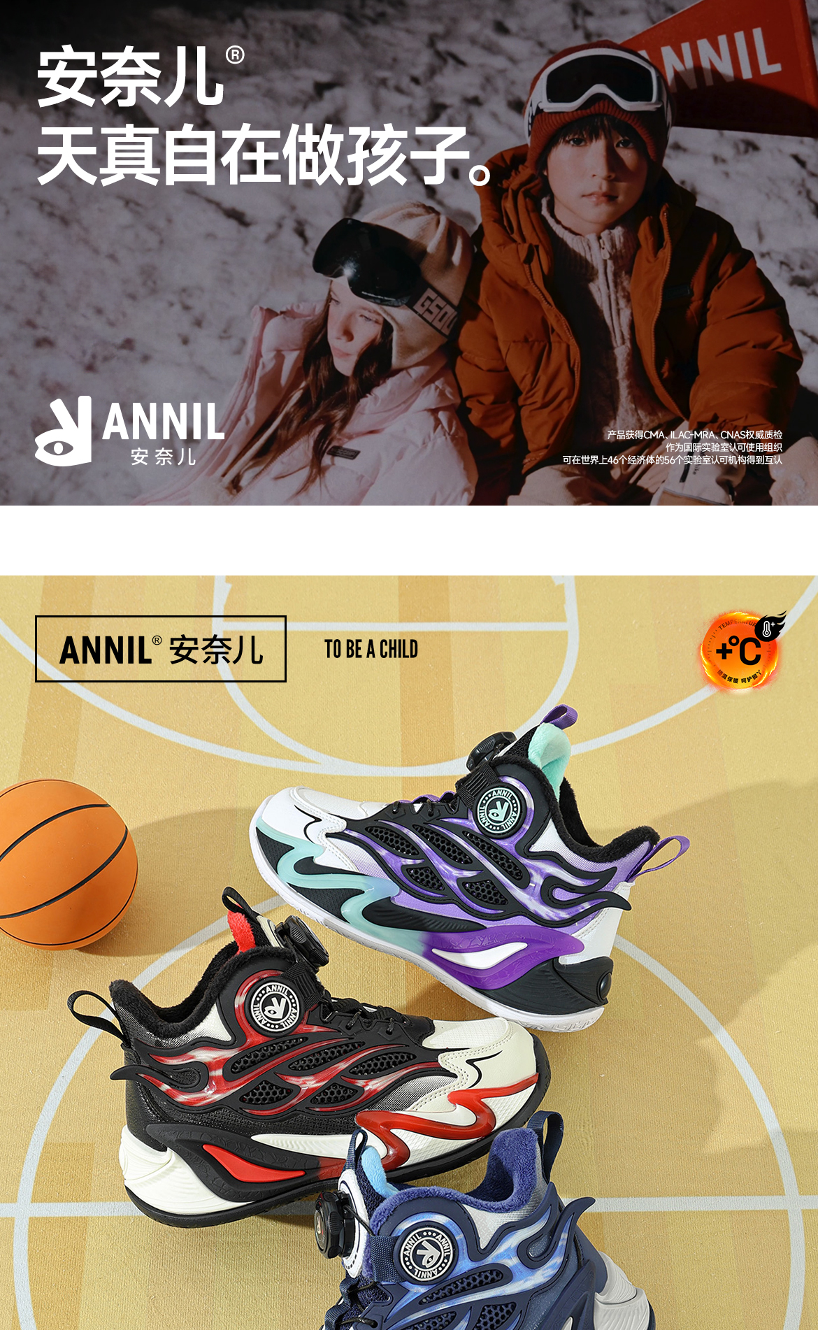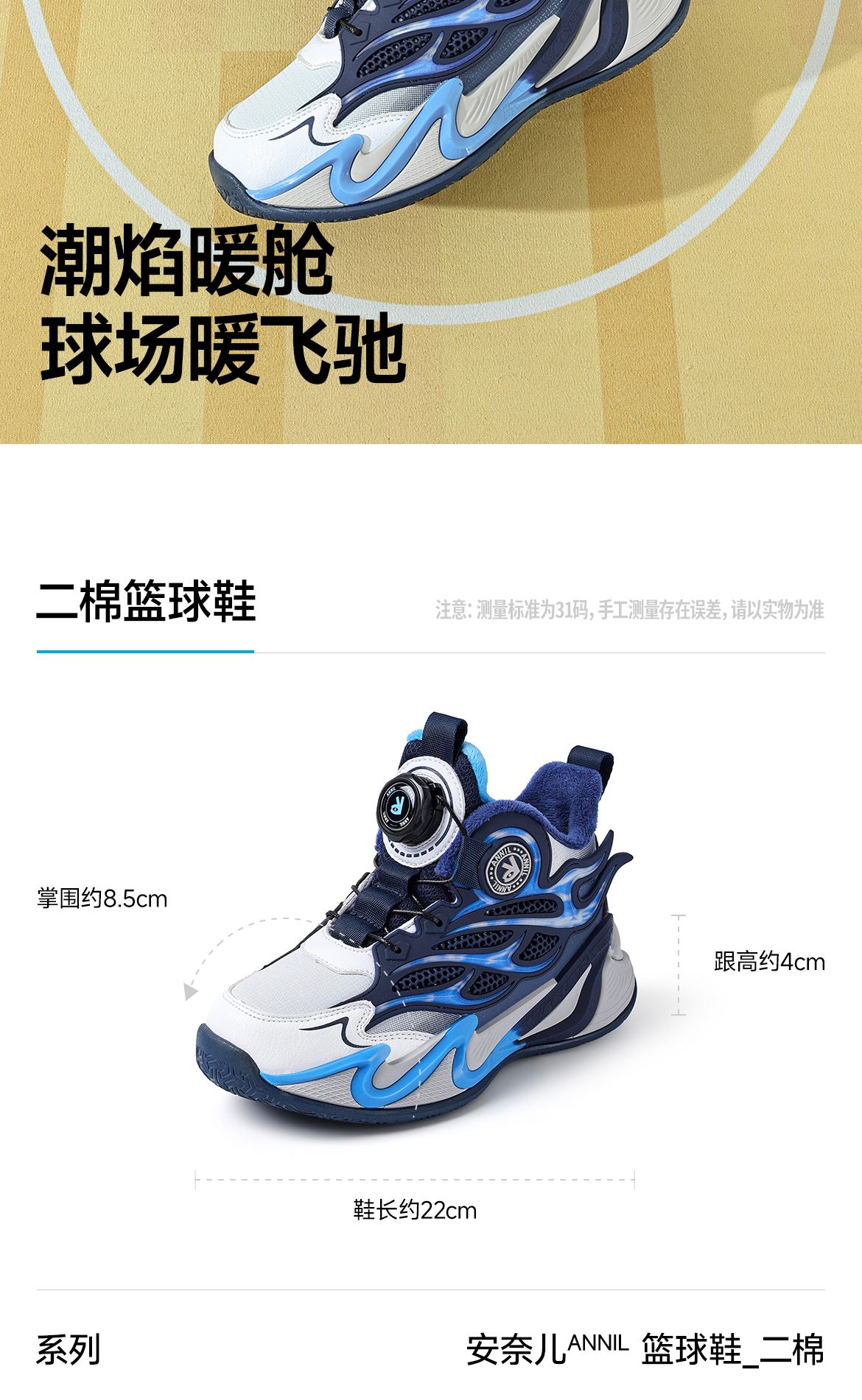 ANNIL/安奈儿童鞋男女童冬季加绒加厚篮球鞋运动鞋童鞋运动风防滑缓震HM5405692