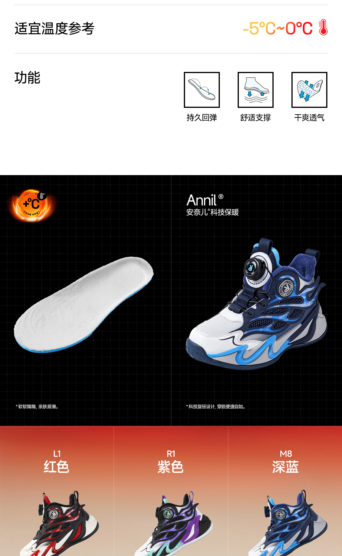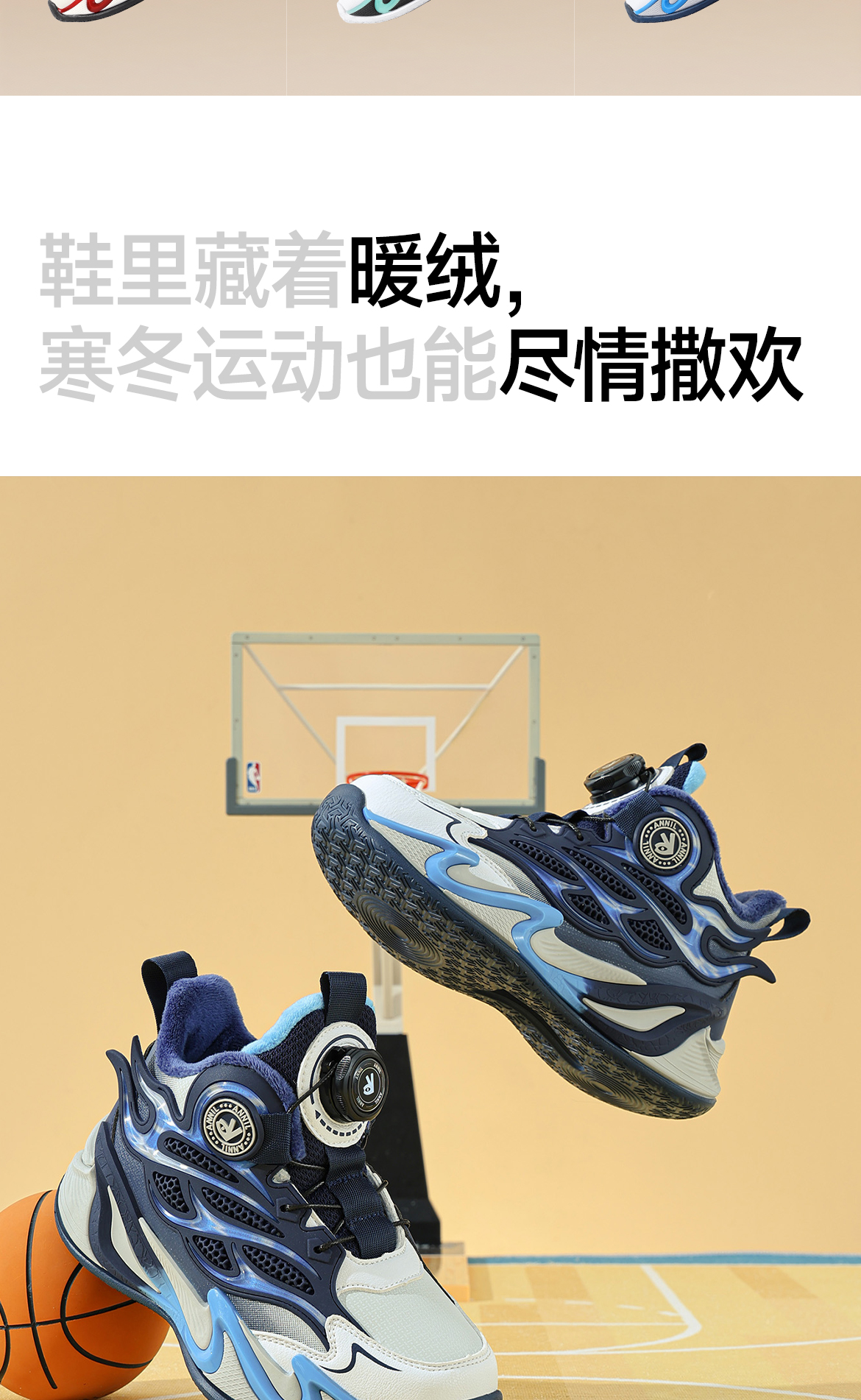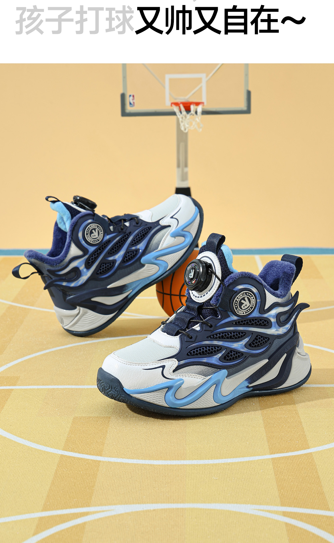 ANNIL/安奈儿童鞋男女童冬季加绒加厚篮球鞋运动鞋童鞋运动风防滑缓震HM5405692