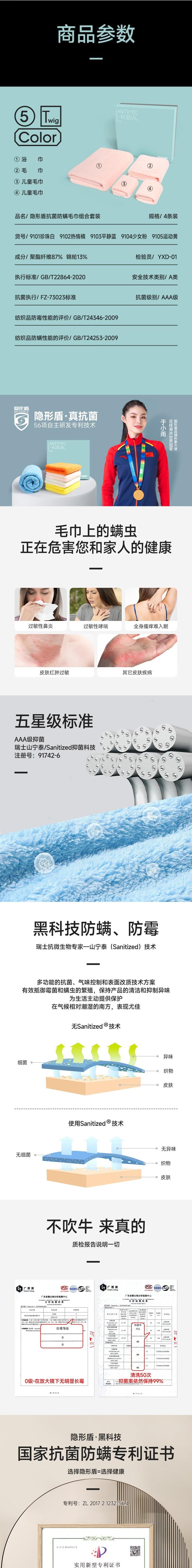 隐形盾 通用抗菌防螨毛巾组合套装1套 YM4X-9103