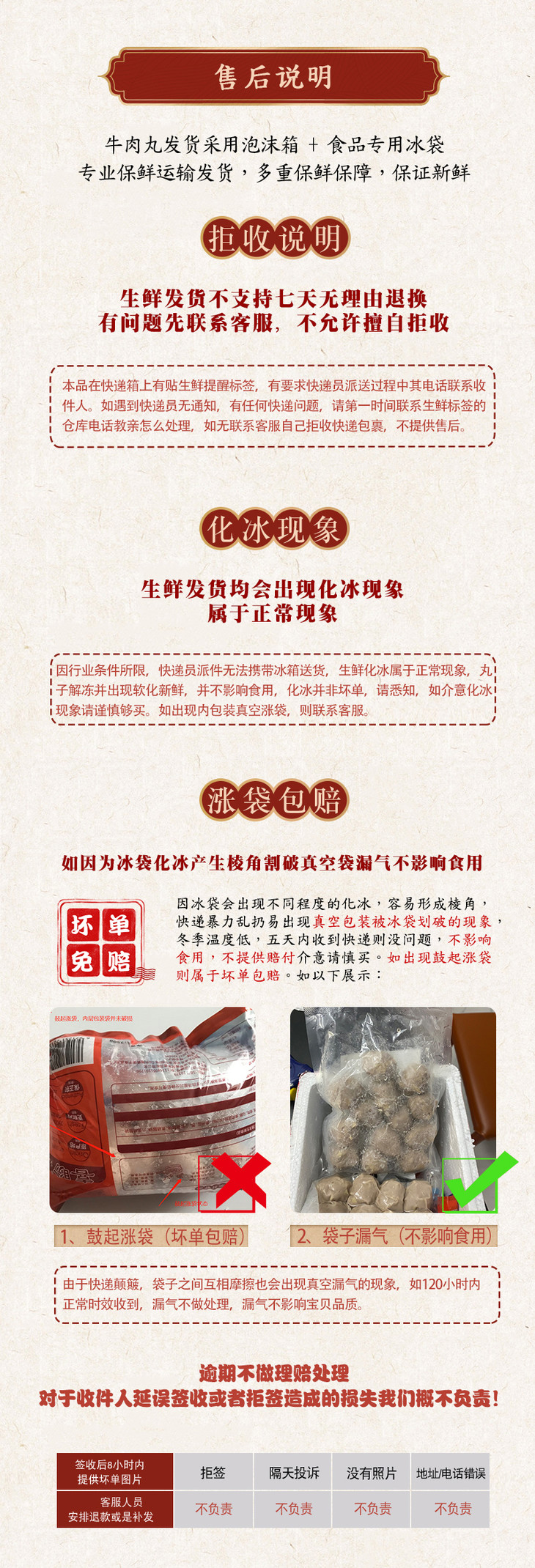 品名:喜盼正宗潮汕牛肉丸牛筋丸 规格1:牛肉丸250g/袋*6袋(赠送牛肉饼200g) 规格1:牛筋丸250g/袋*6袋(赠送牛肉饼200g) 规格1:250g/袋*6袋组合(牛肉丸*3+牛筋丸*3)赠送牛肉饼200g;拍几份发几个包裹,不一定能同时到达,请耐心等待; 发货地/产地:广东 包装方式:泡沫装+冰袋+袋装 物流信息:默认顺丰@京东发货,不支持指定快递 发货区域:新疆、西藏、青海、甘肃、宁夏、内蒙、黑龙江、吉林、辽宁不发; 物流详情:周六、周日及节假日除外,正常48小时内发货,到货时间约为2~5天,请耐心等待 售后说明:收到货后有质量问题,在24小时内都可以拍照(坏品+快递单面箱子一起拍)上传,申请按坏品比例理赔或联系客服;生鲜食品性质特殊,不支持7天无理由退换货;因地址错误,手机号联系不上,拒收等造成的损失无法售后,请理解; |