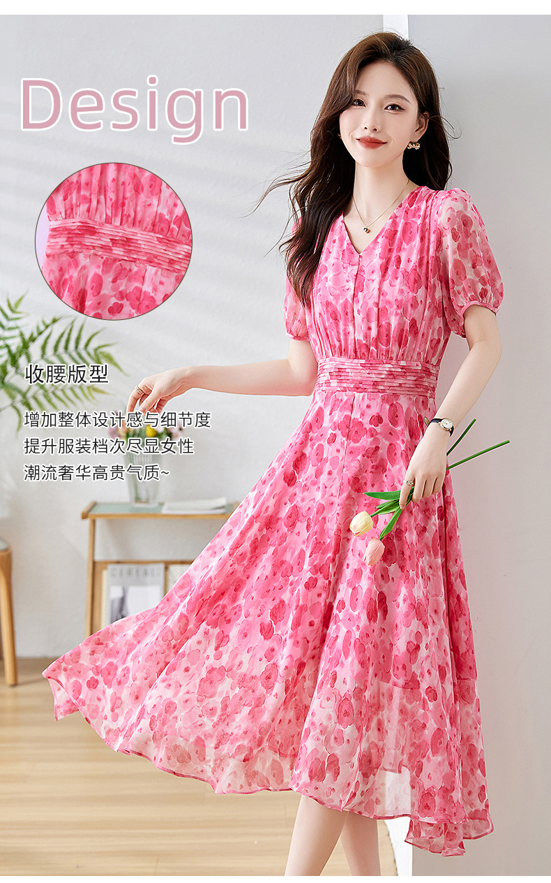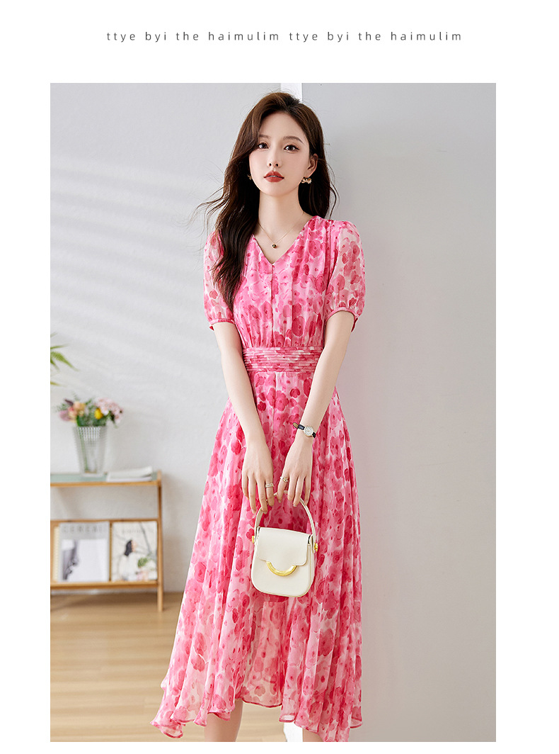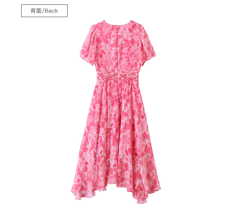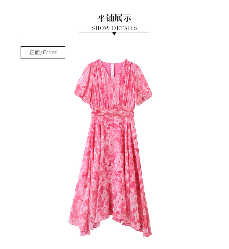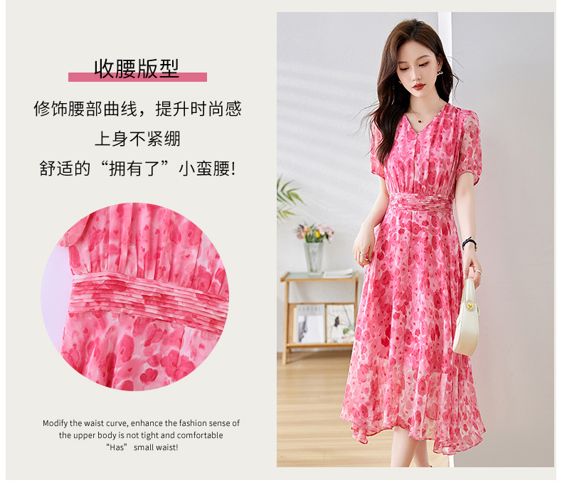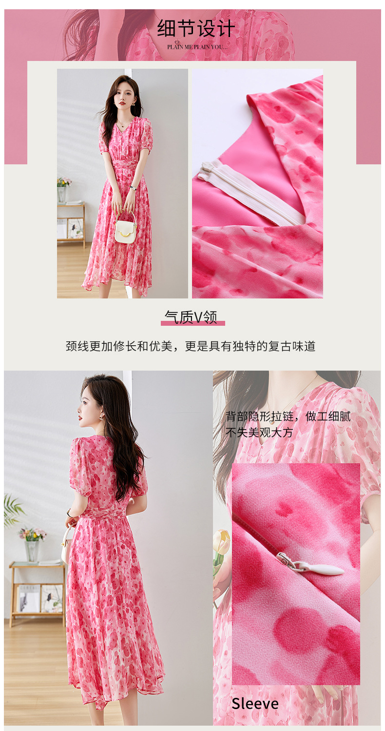 法式印花收腰显瘦,碎花气质v领连衣裙HR-6080
