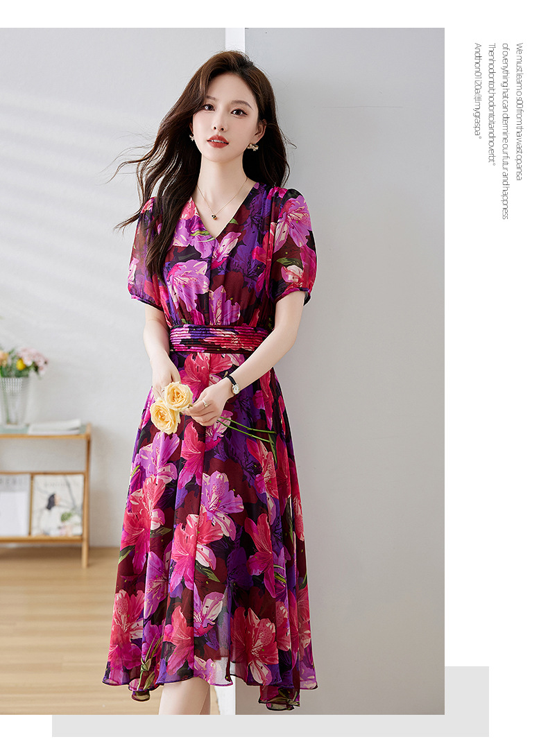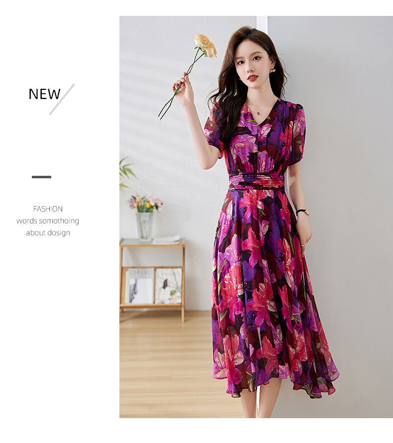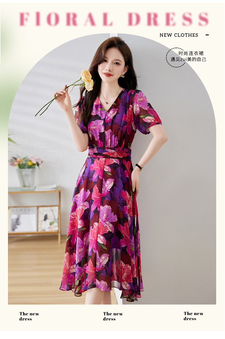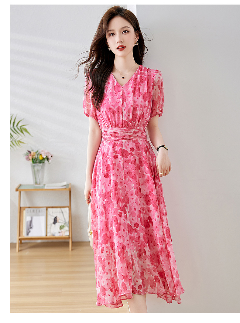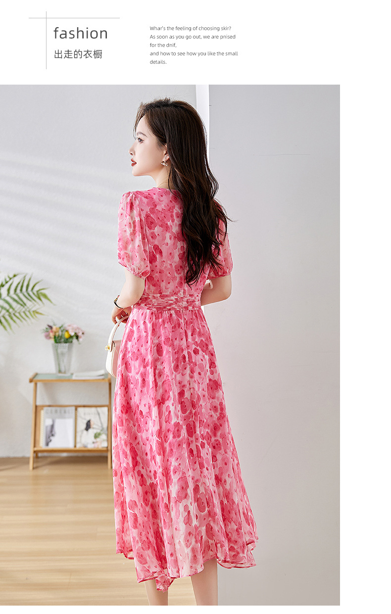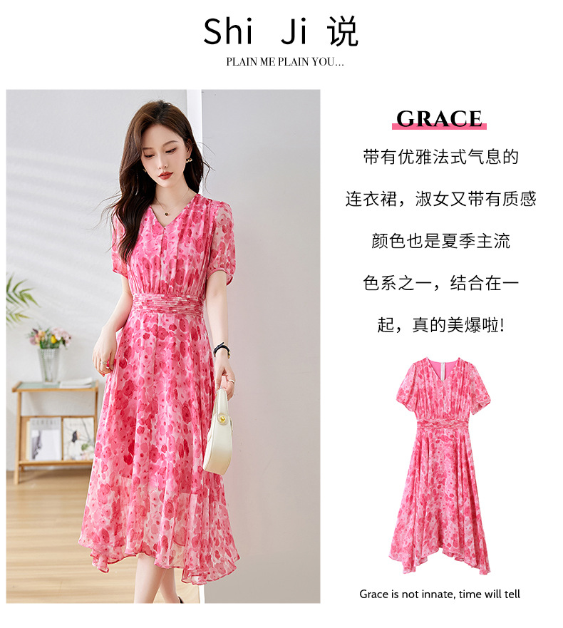 法式印花收腰显瘦,碎花气质v领连衣裙HR-6080