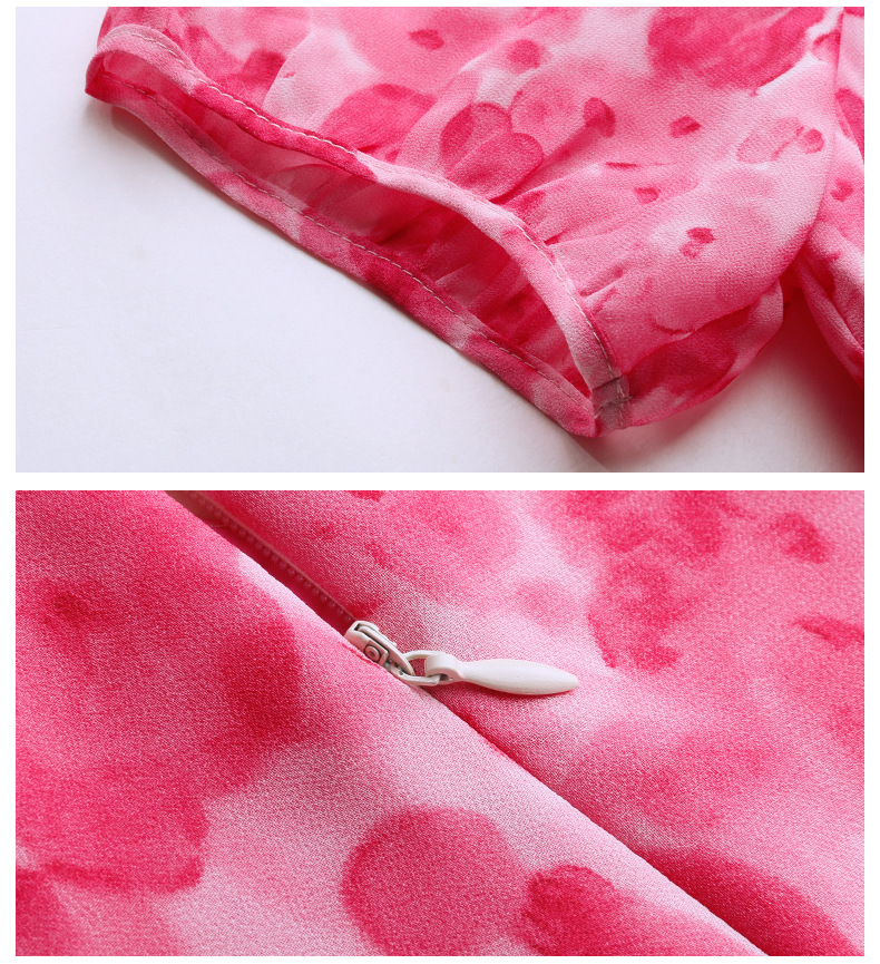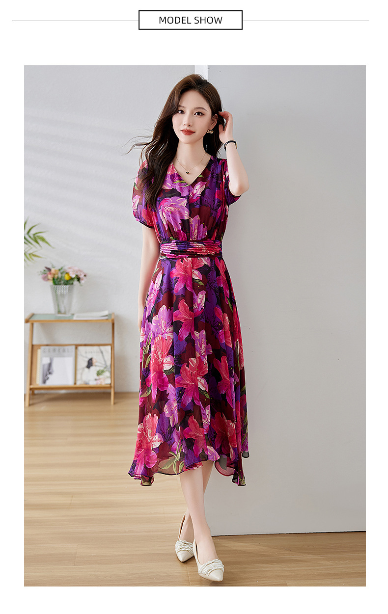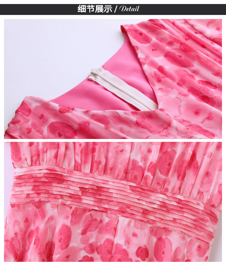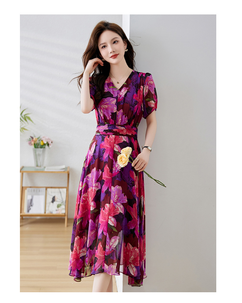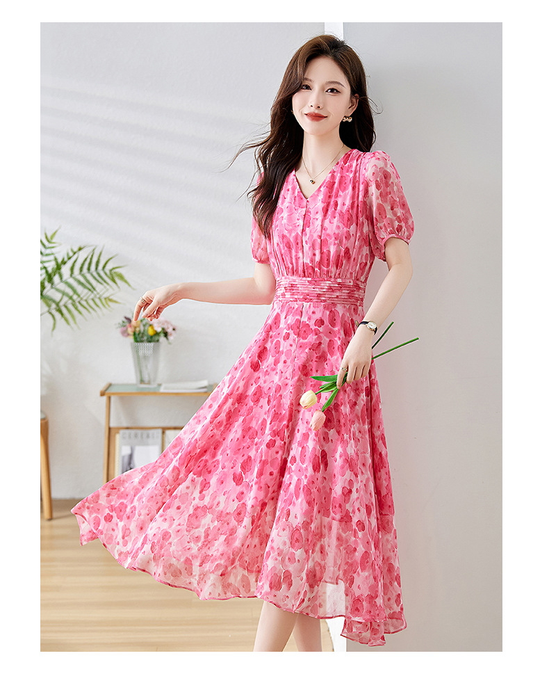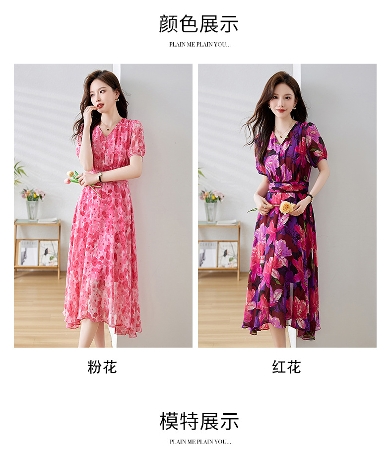 法式印花收腰显瘦,碎花气质v领连衣裙HR-6080