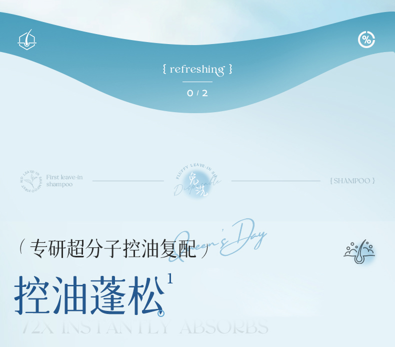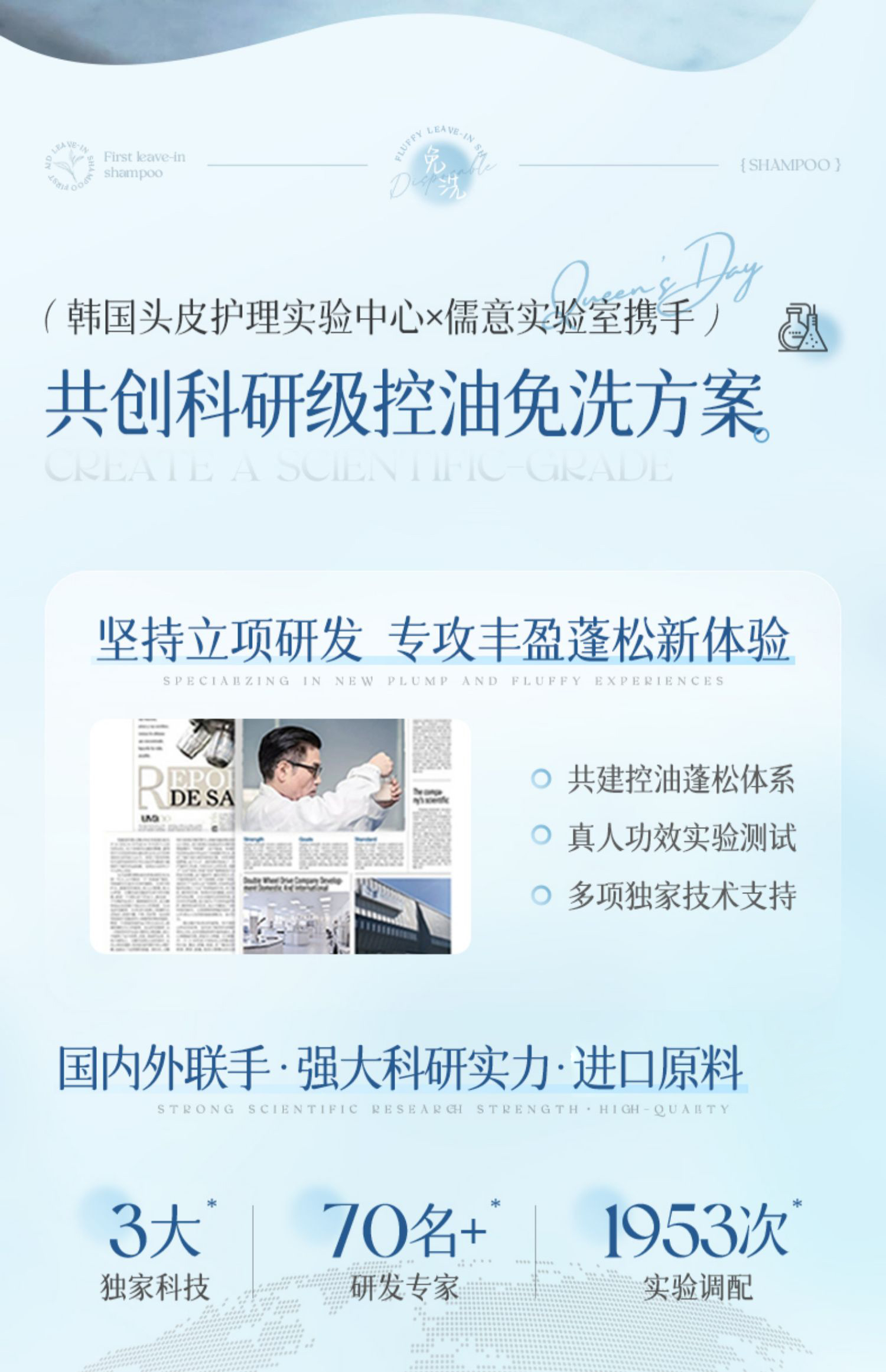 专属 儒意免洗洗发水控油蓬松 正品清洁吸油高颅顶便携