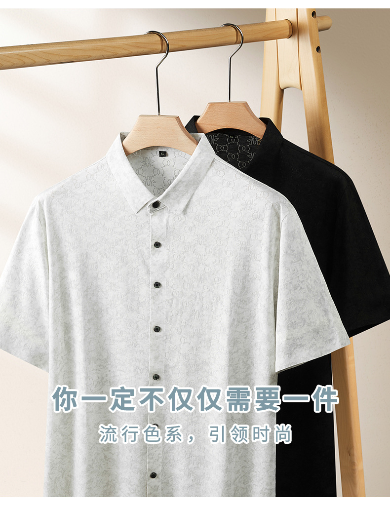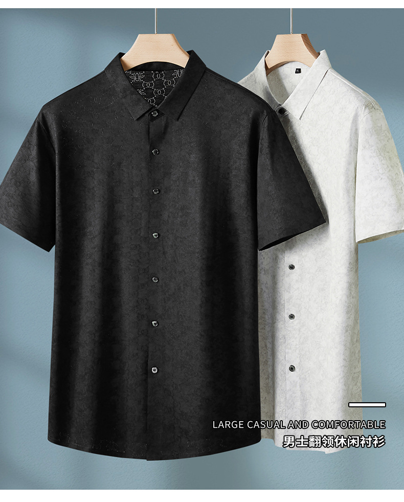 【棉质】【DPF】大依优型大码短袖衬衫潮流碎花半袖衬衣加肥加大码棉质透气夏装肥佬宽松上衣男士