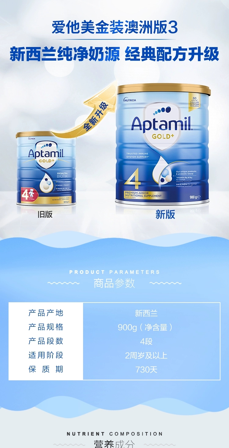 澳洲爱他美 金装婴幼儿奶粉4段 900g 跨境购