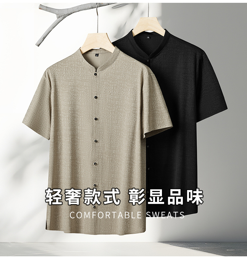 【弹力】【DDP】大依优型大码短袖衬衫加肥大码中国风男装半袖立领衬衣夏季新款肥佬时尚上衣胖子