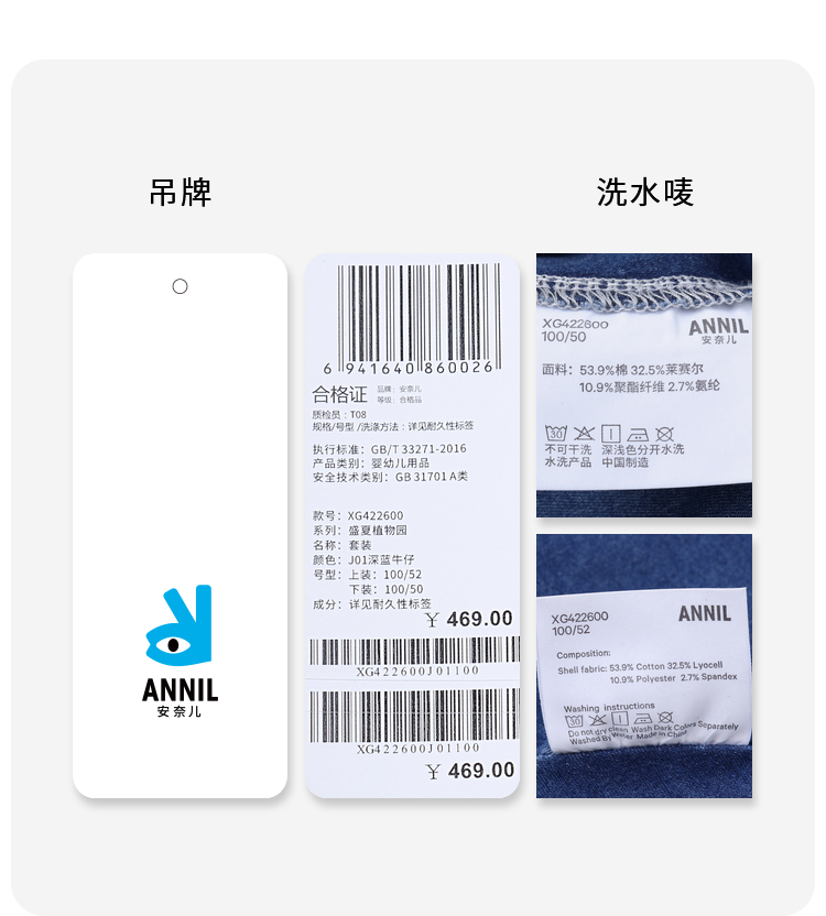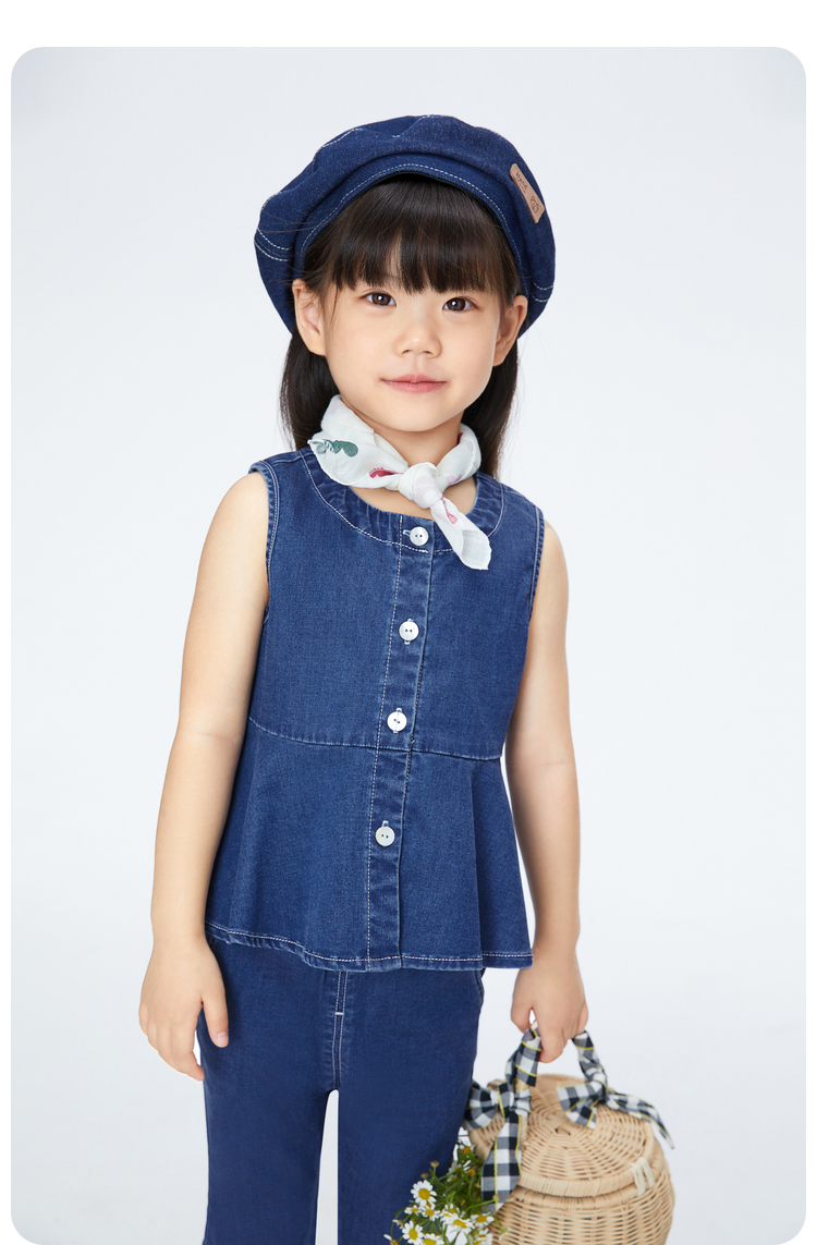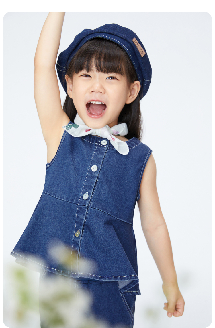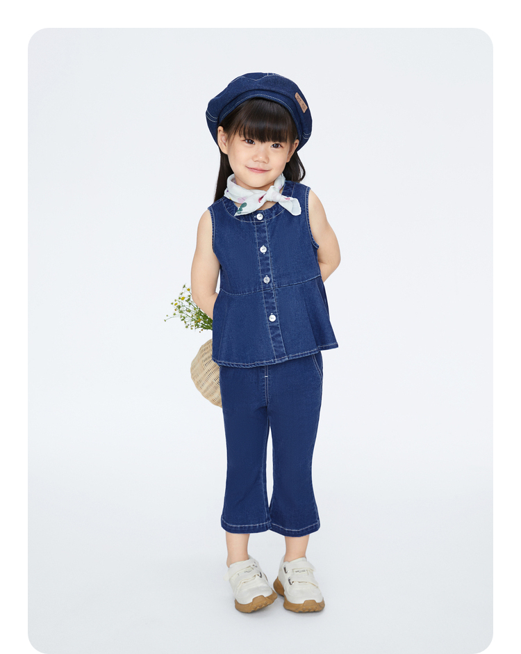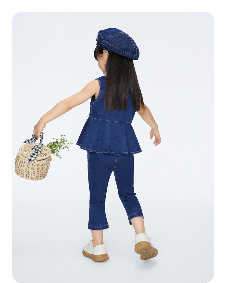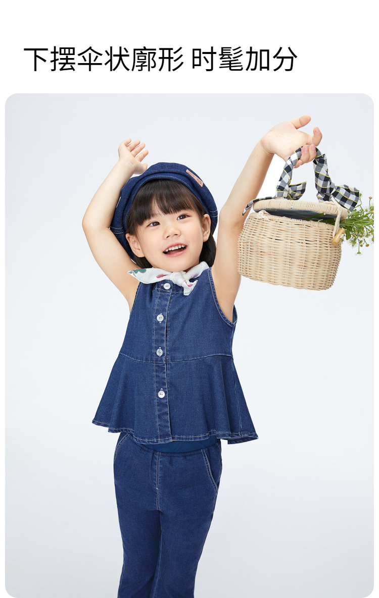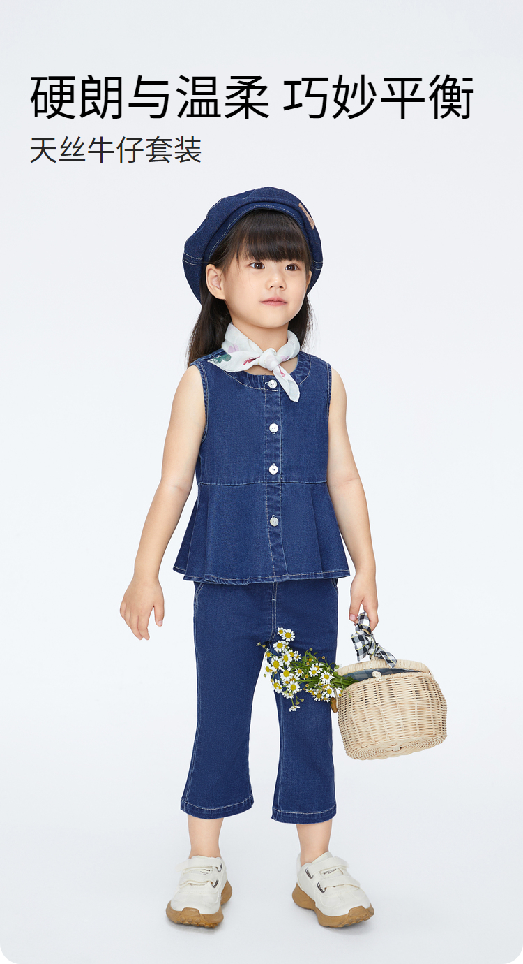 女童泡芙软软牛仔套装新款安奈儿童装实体店同款XG422600