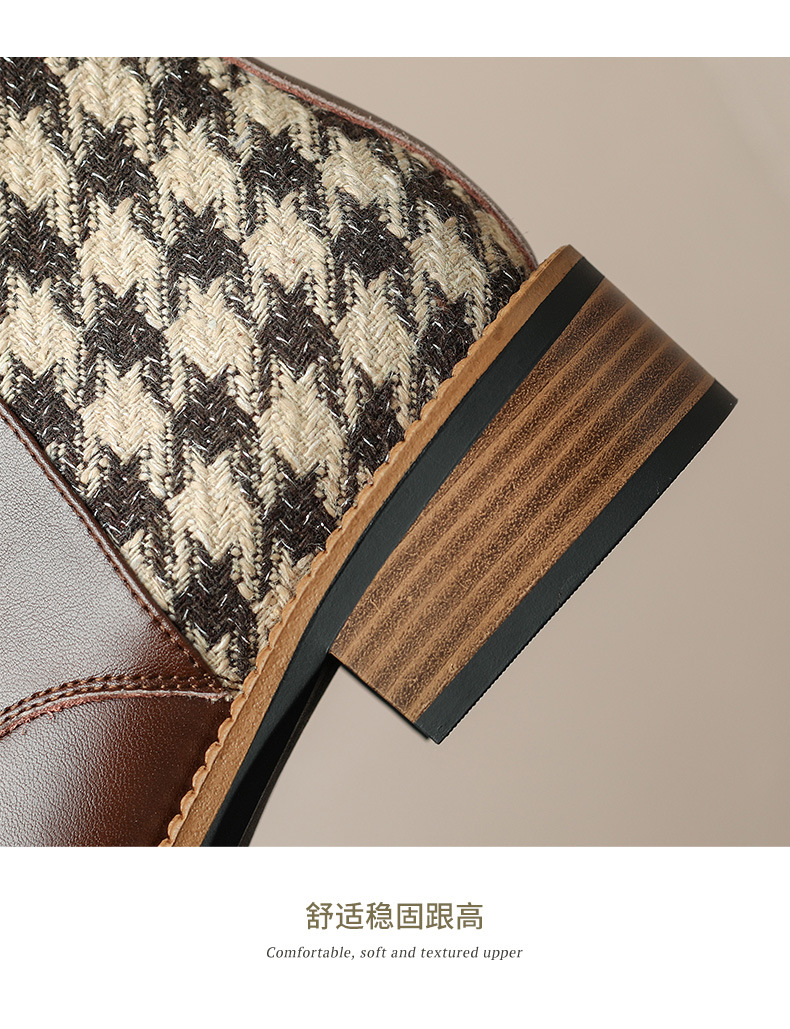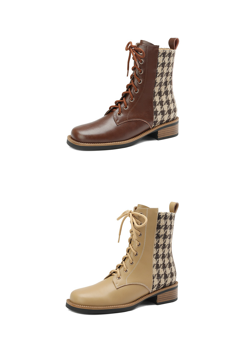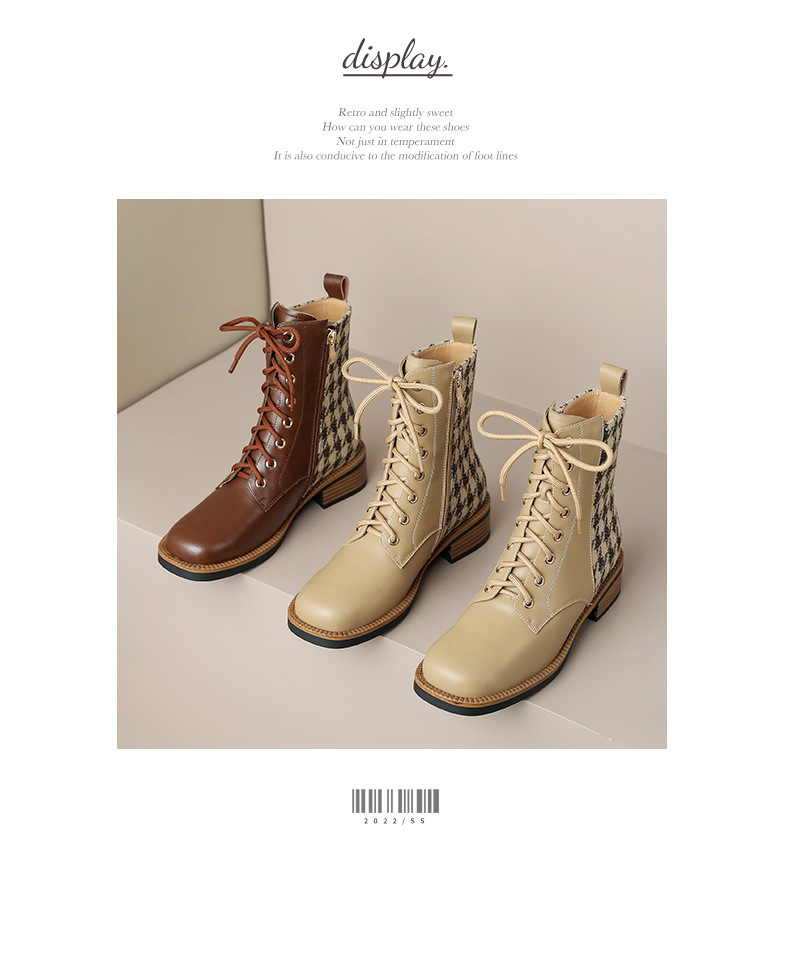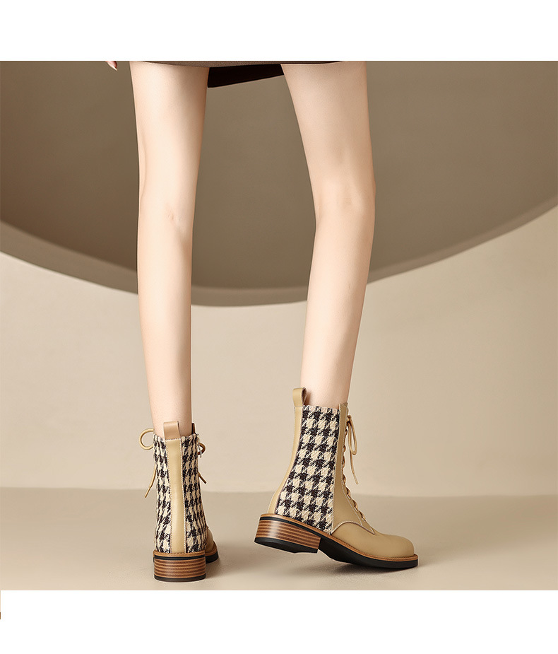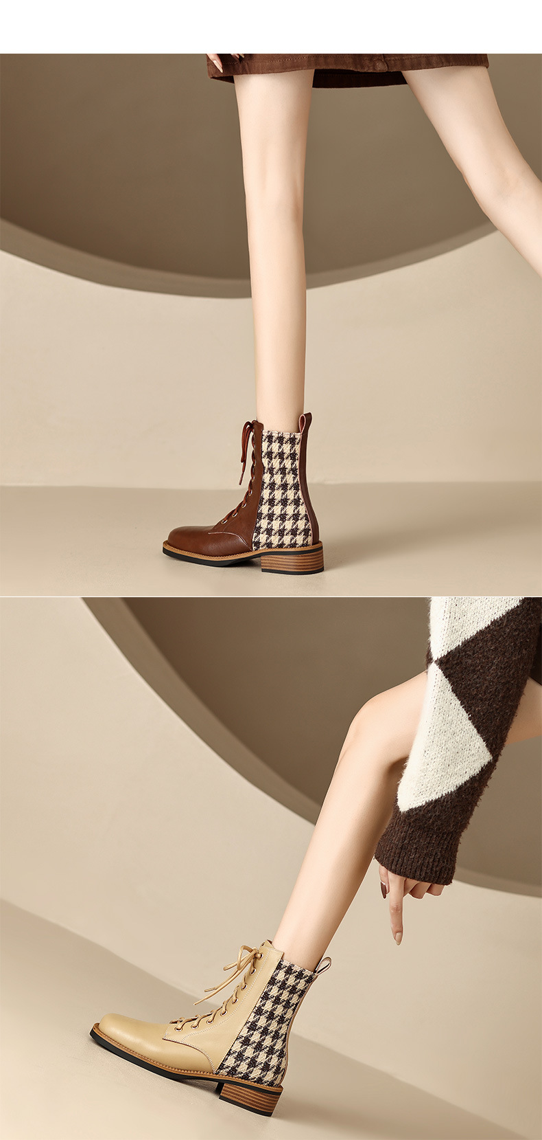 英伦风系带马丁靴,圆头拼色格子短靴HBP-3847