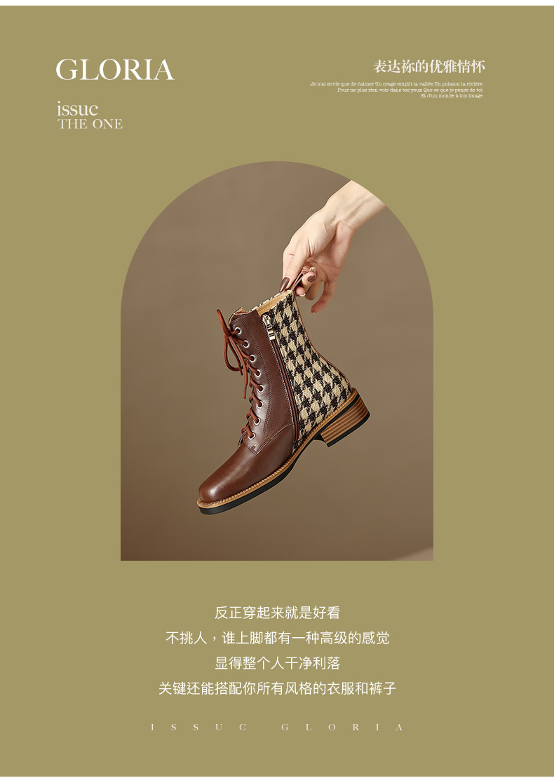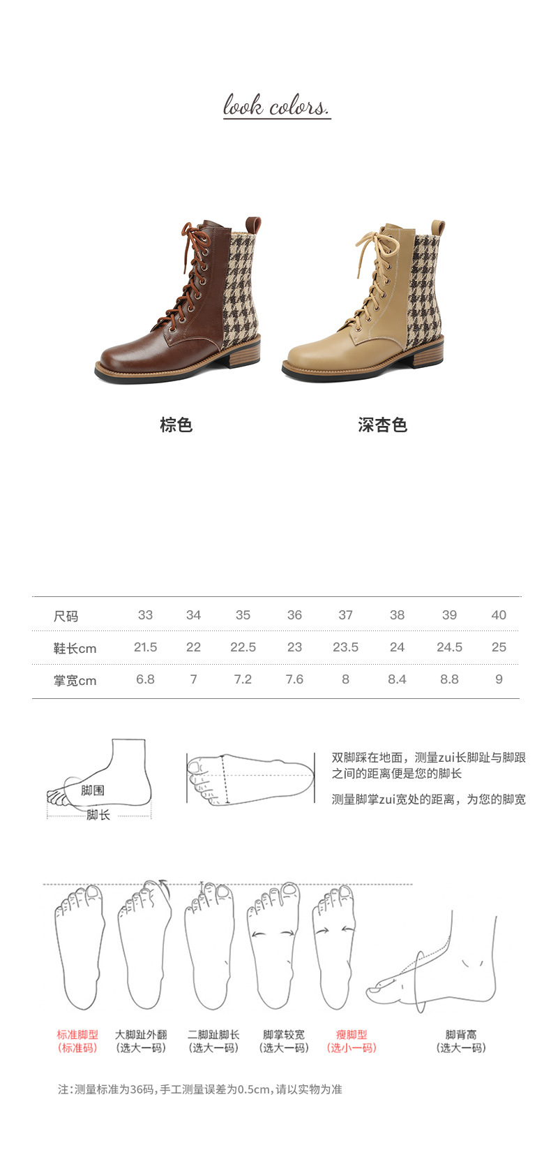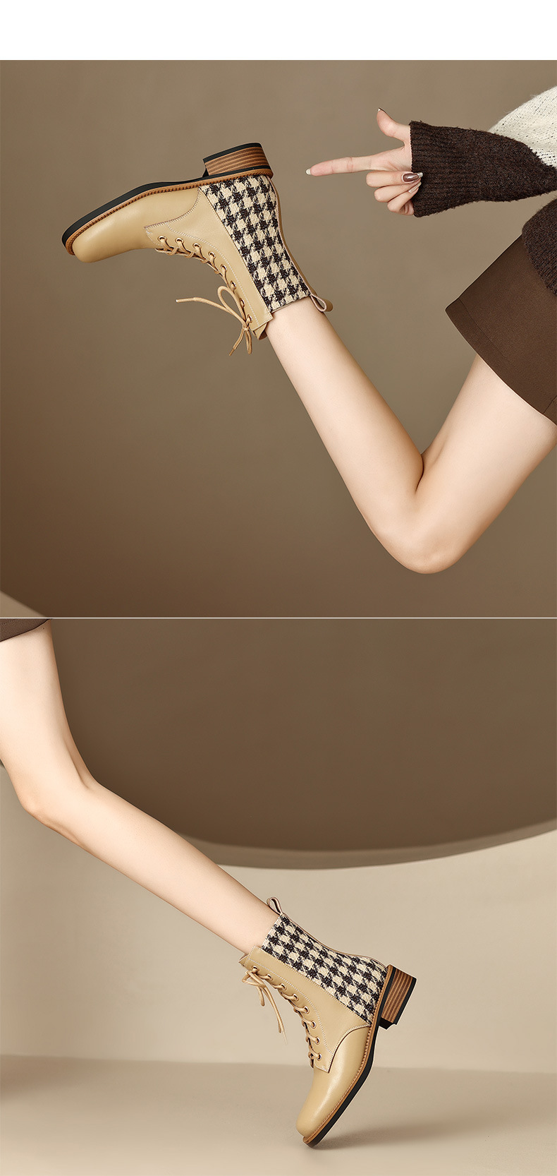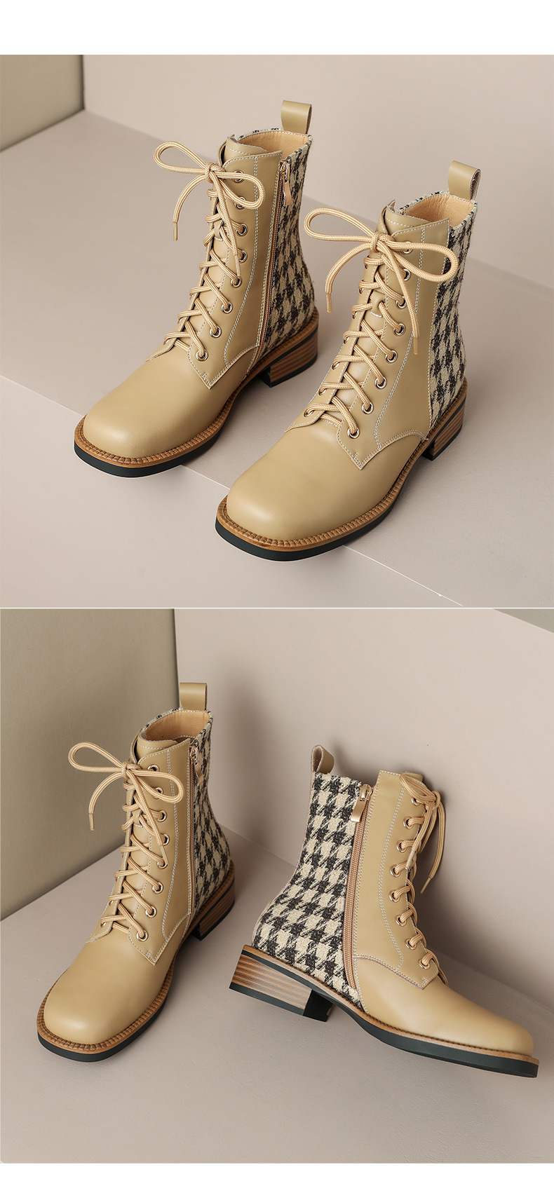 英伦风系带马丁靴,圆头拼色格子短靴HBP-3847