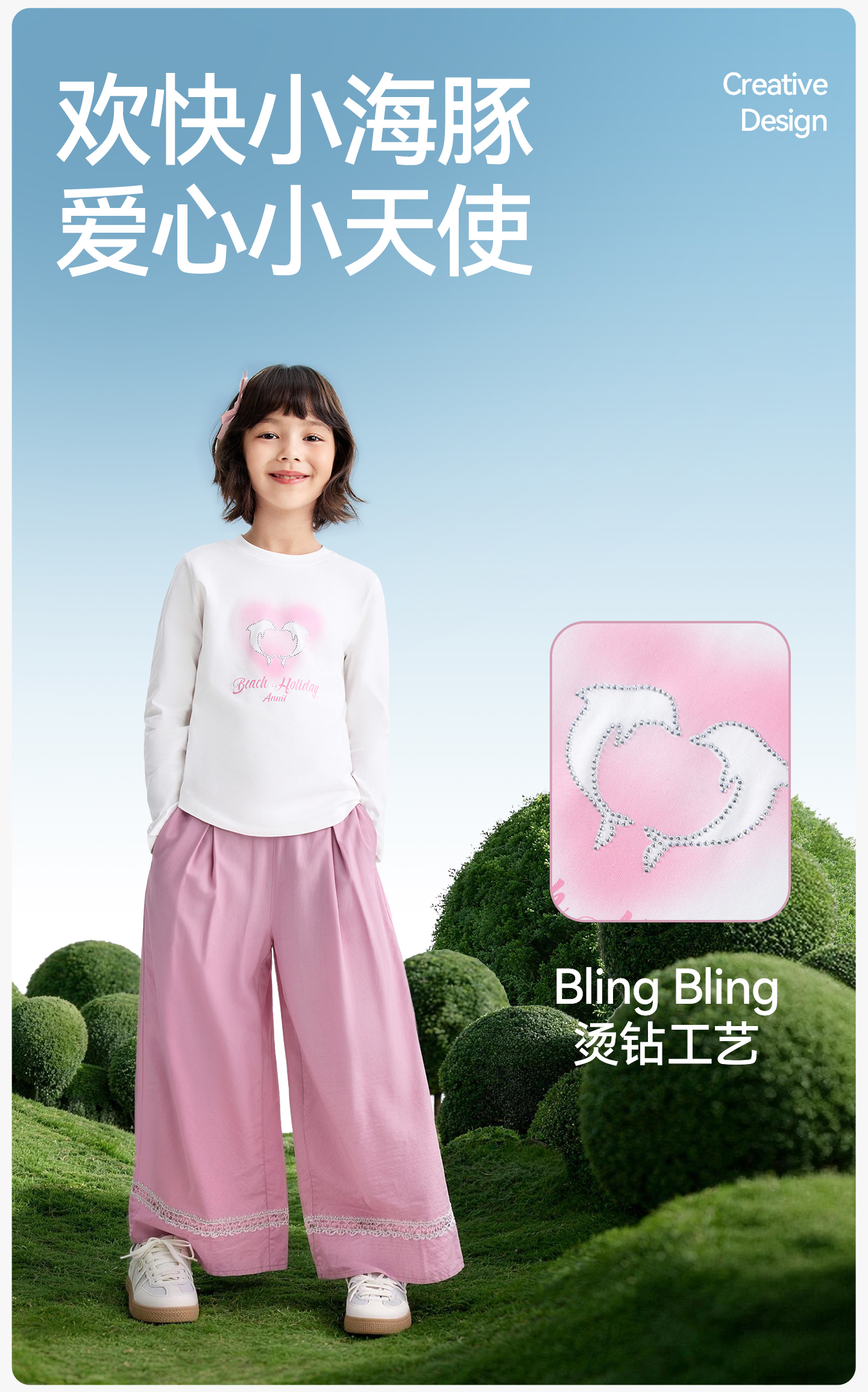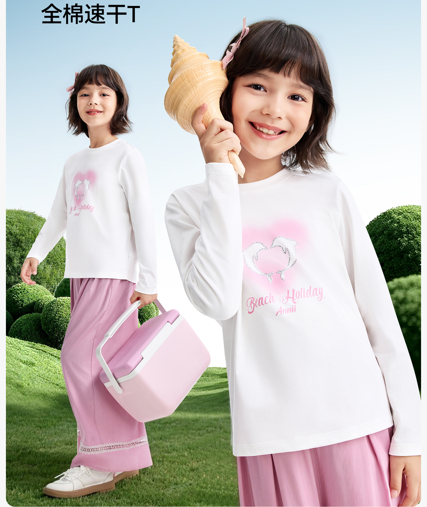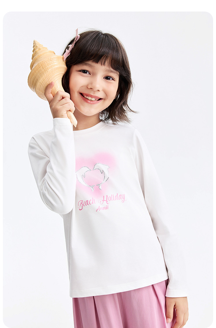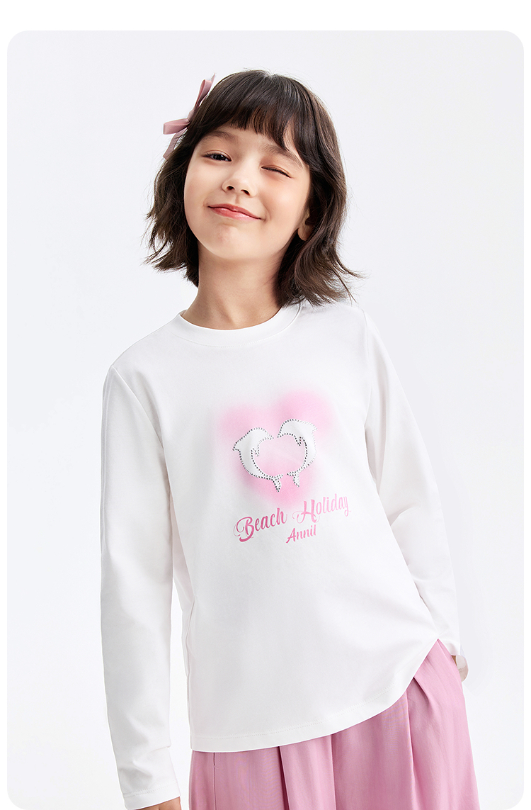 女童圆领长袖针织衫春季新款安奈儿童装EG611606