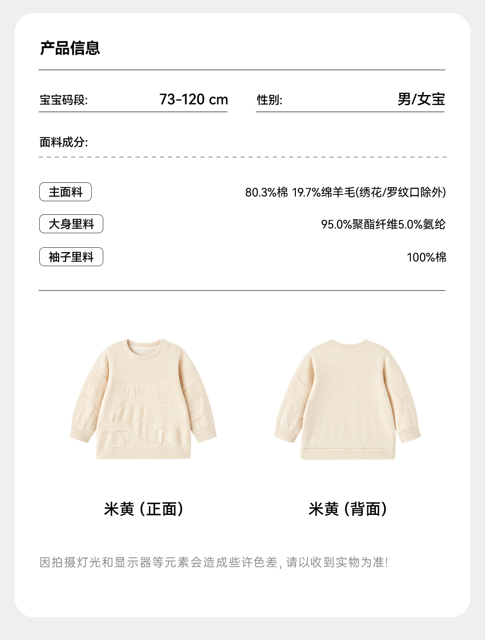 【商场同款】英氏羊毛衫长袖男童百搭上衣秋冬女童针织衫新款