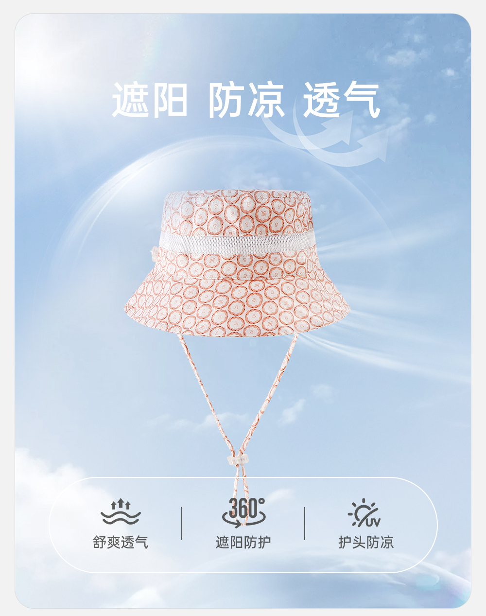 【商场同款】英氏婴儿帽子外出夏季防晒遮阳帽新款女童渔夫帽