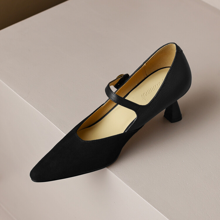 【货号】ZF051D【帮面材质】羊皮+羊猄皮【内里材质】头层猪皮【鞋垫材质】羊皮【鞋底材质】牛筋底【颜色】黑色 棕色【跟高】6.5CM【掌宽】8CM【尺码】34-39