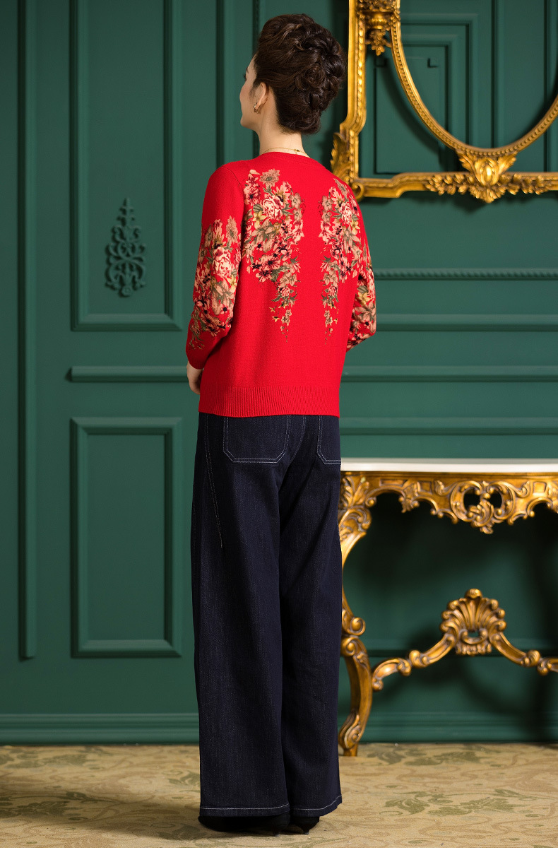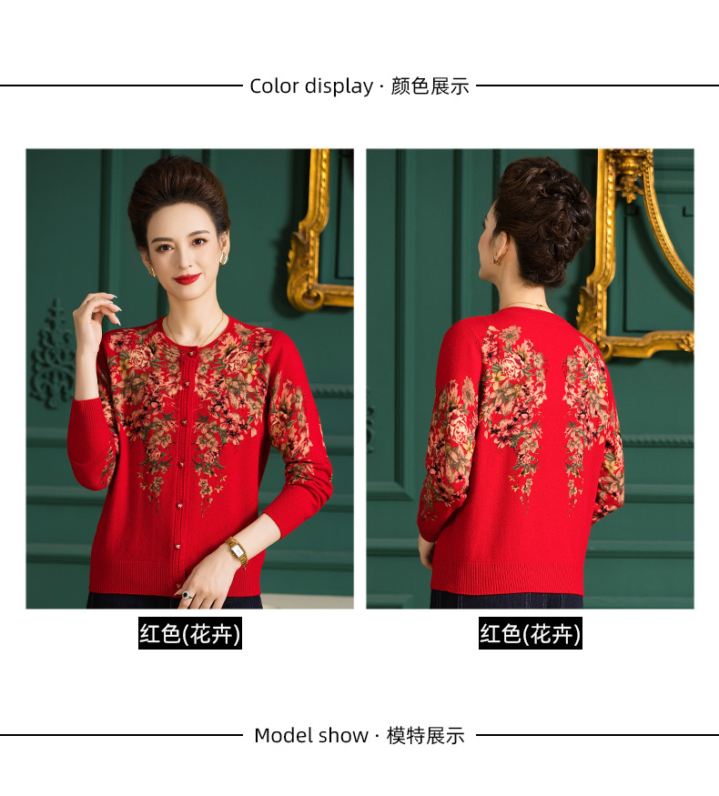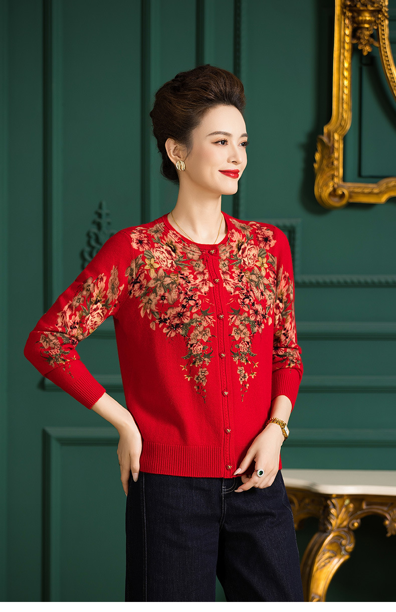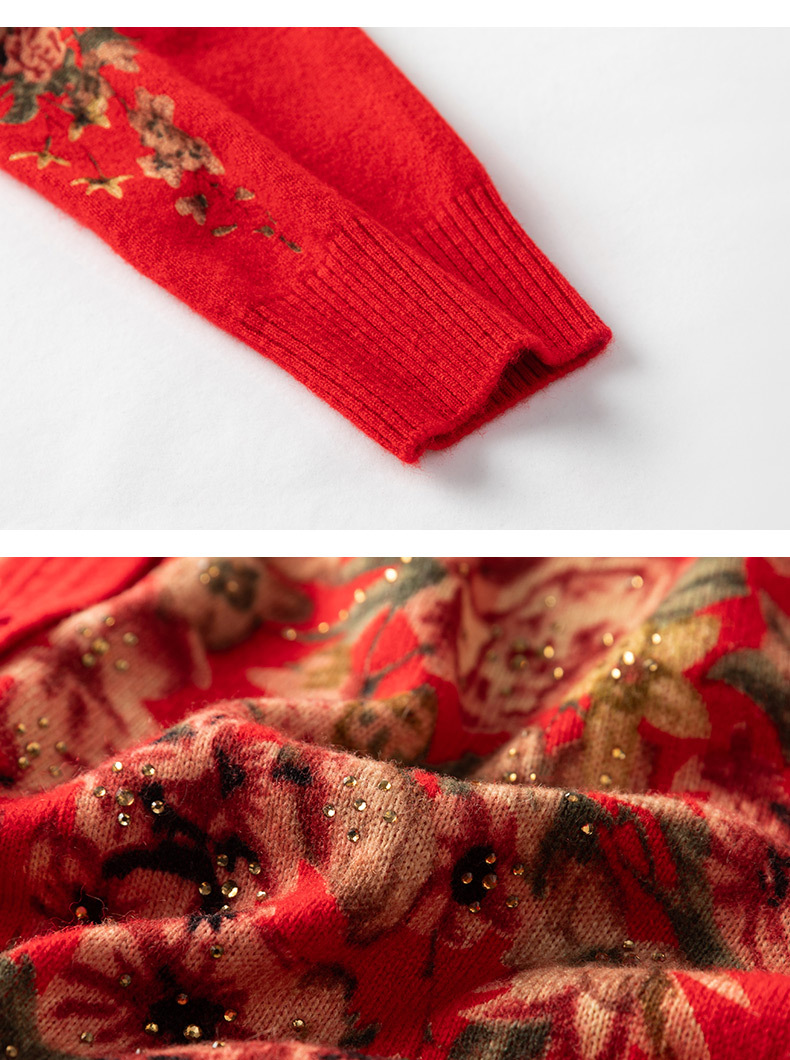 WW MW872羊毛针织开衫洋气印花镶钻外套 商品图1