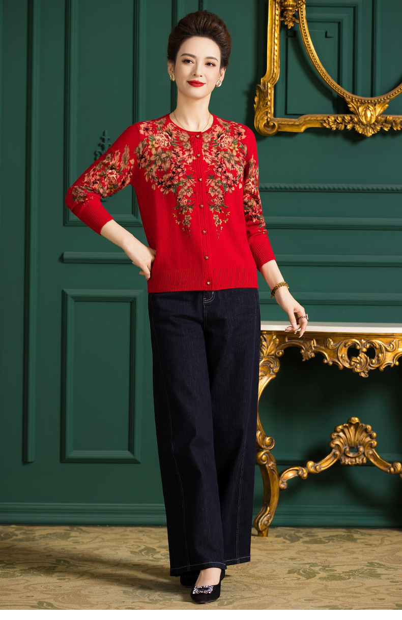 WW MW872羊毛针织开衫洋气印花镶钻外套