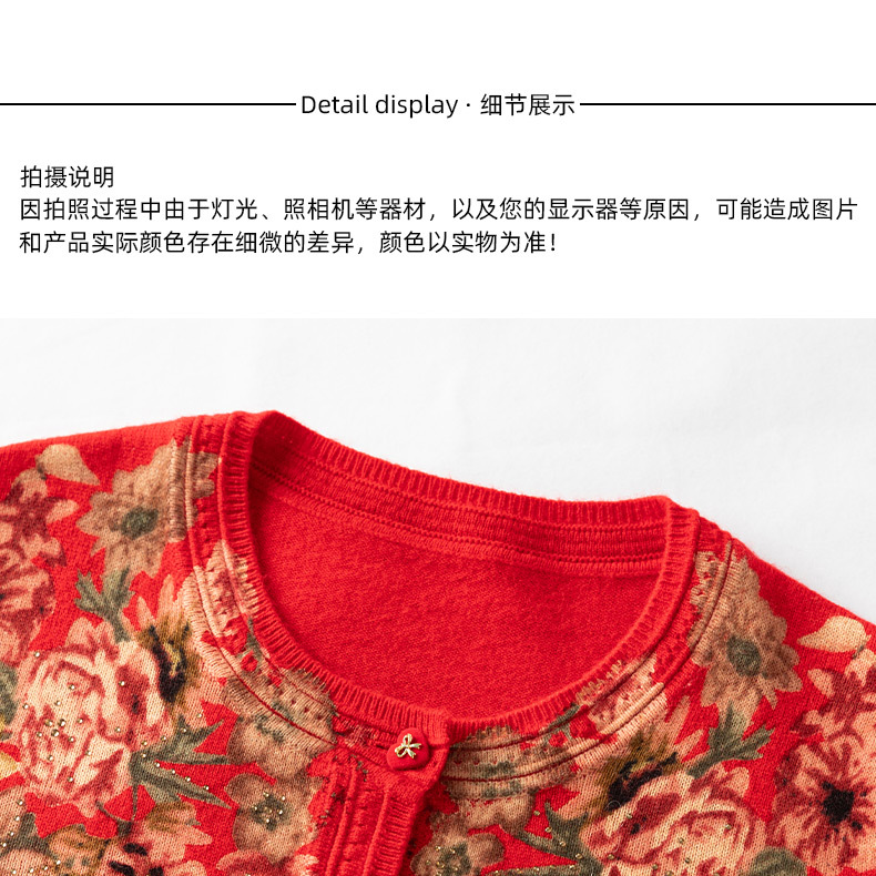 WW MW872羊毛针织开衫洋气印花镶钻外套 商品图2