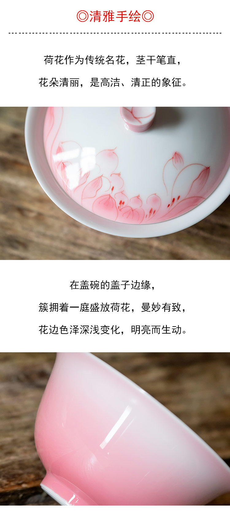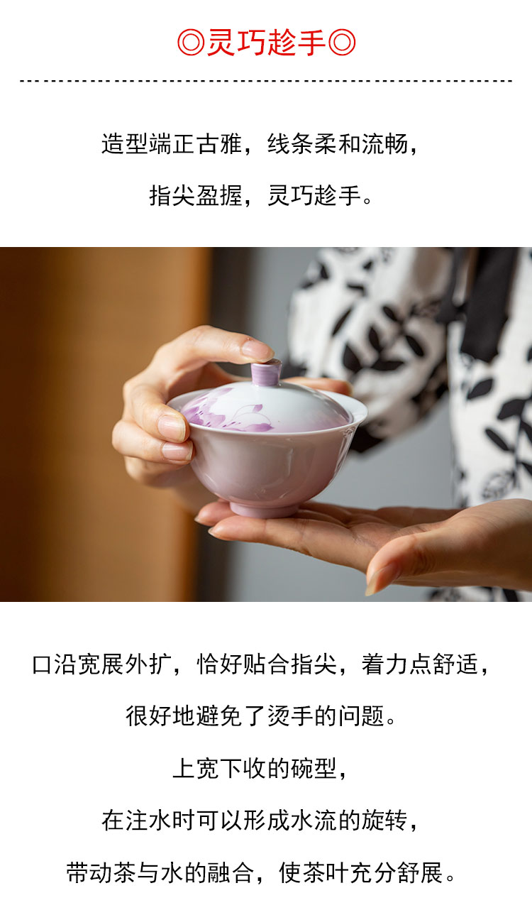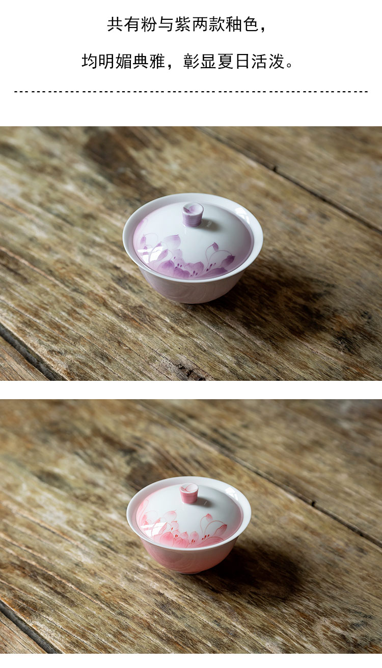 茶香记 无托盖碗 手绘紫荷粉荷 盖碗 清雅手绘 明媚典雅 灵巧趁手