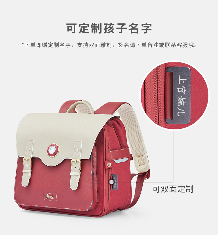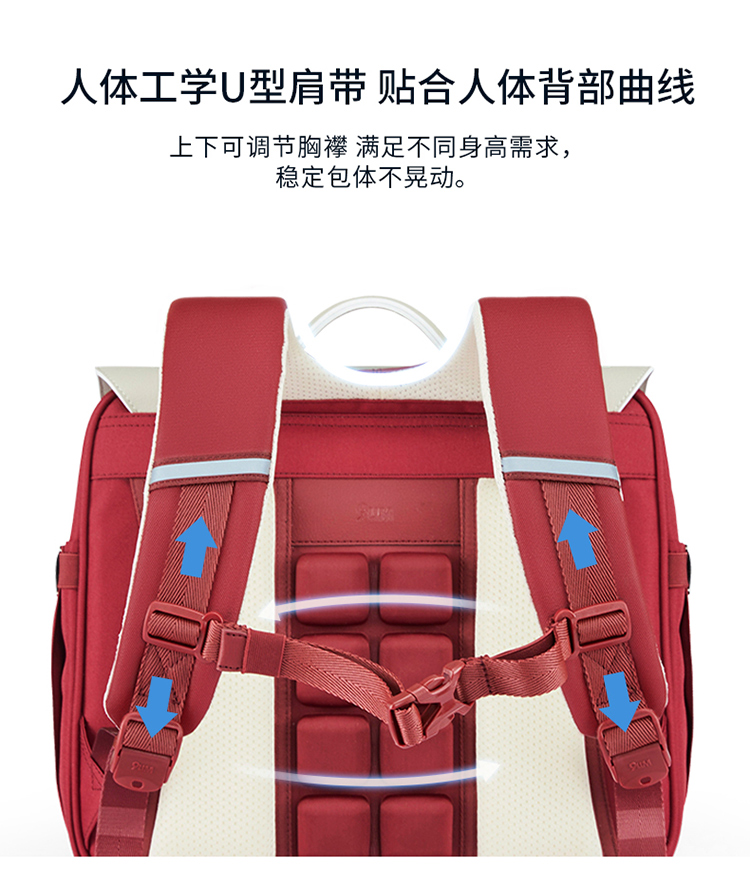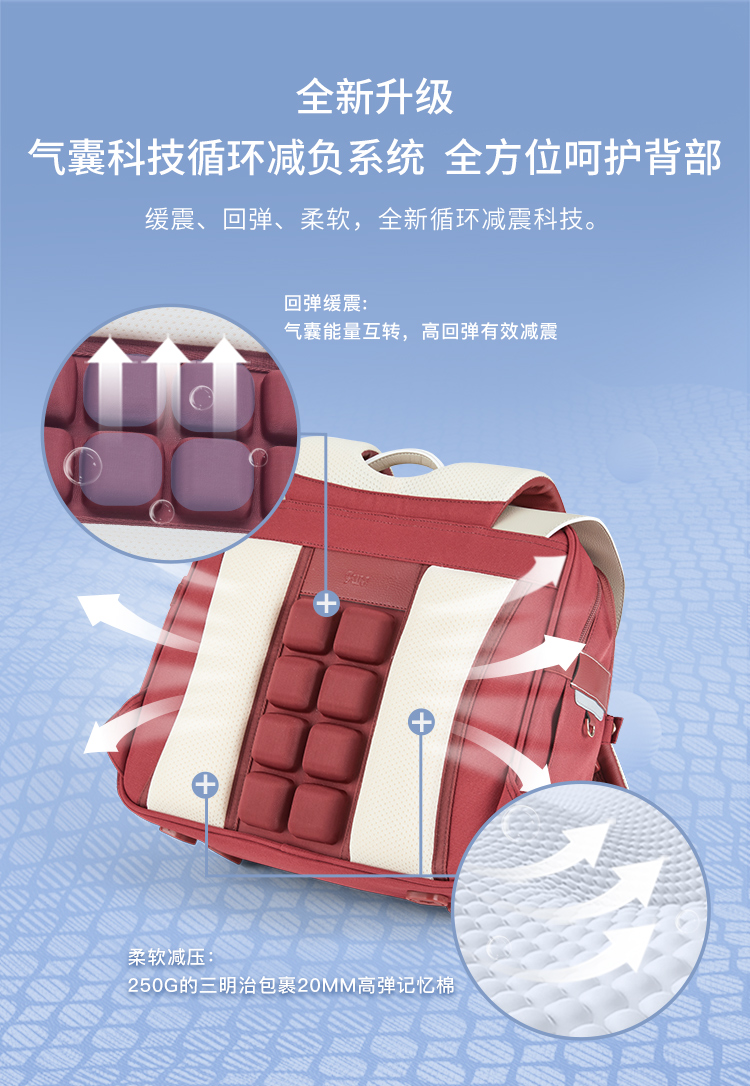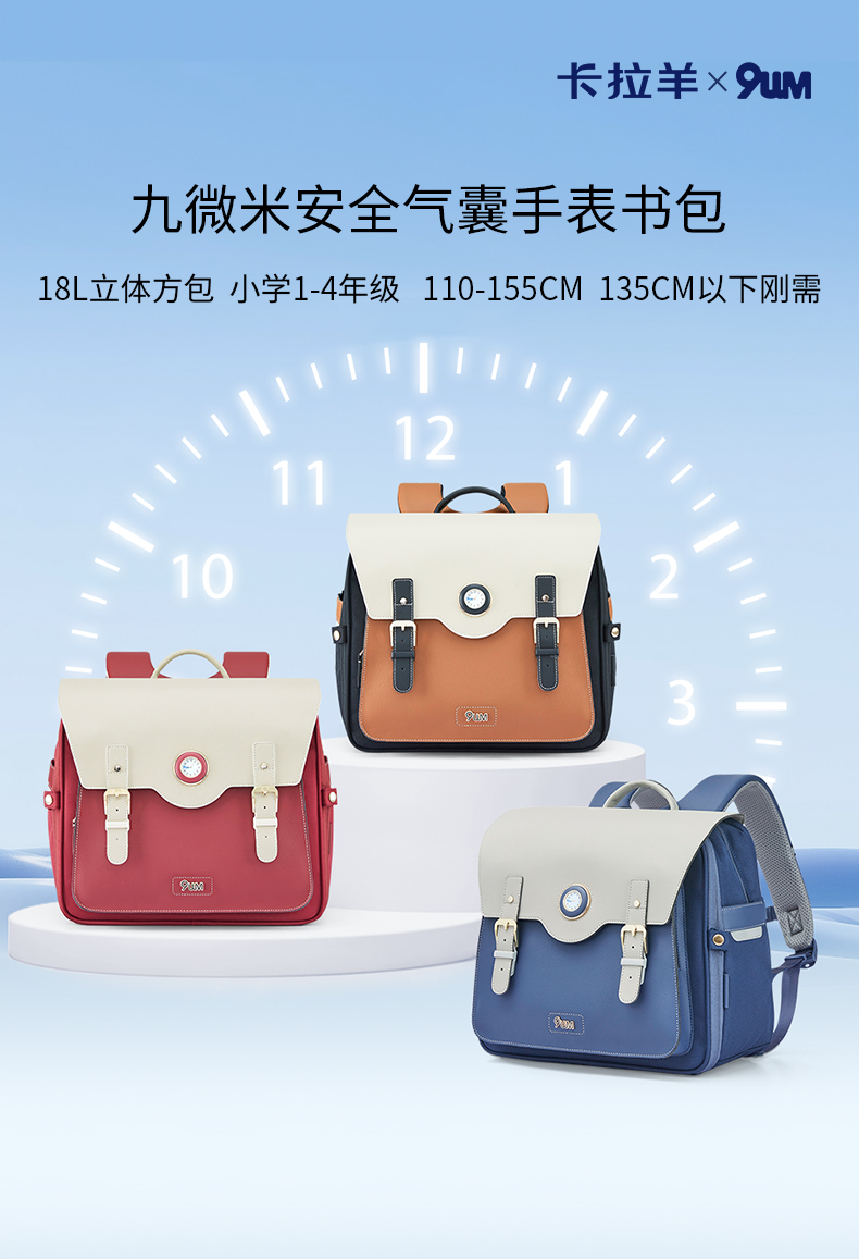 卡拉羊X九微米18L小学生1-4年级防下坠减负气囊缓震轻奢立体书包 凯旋门 U2174