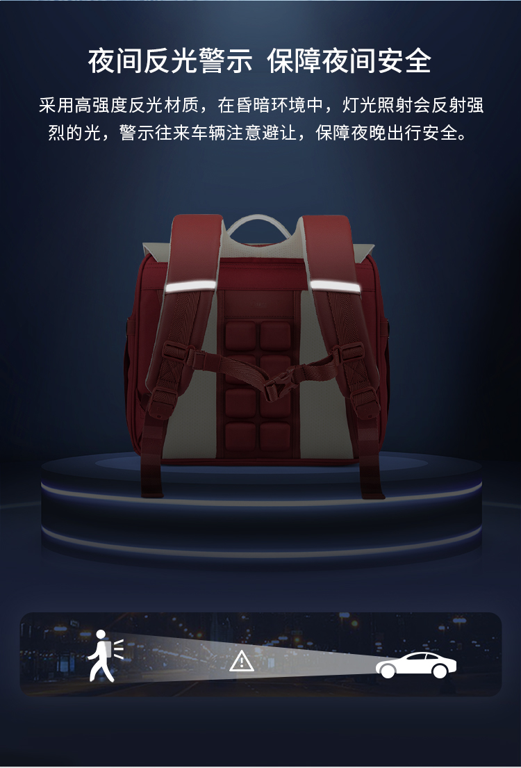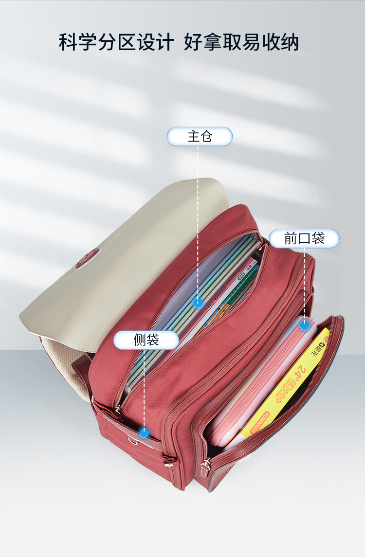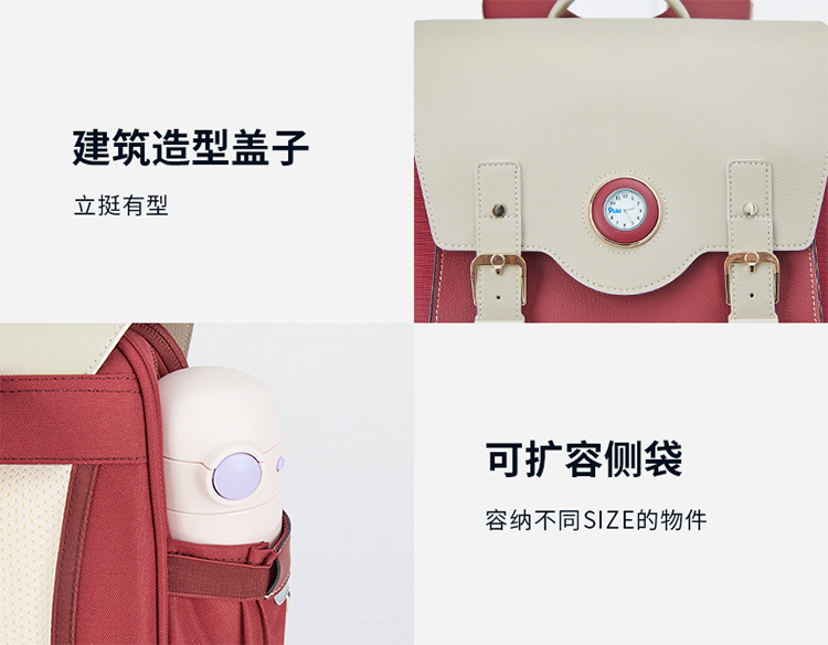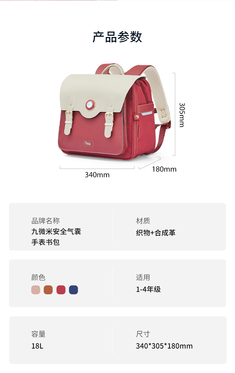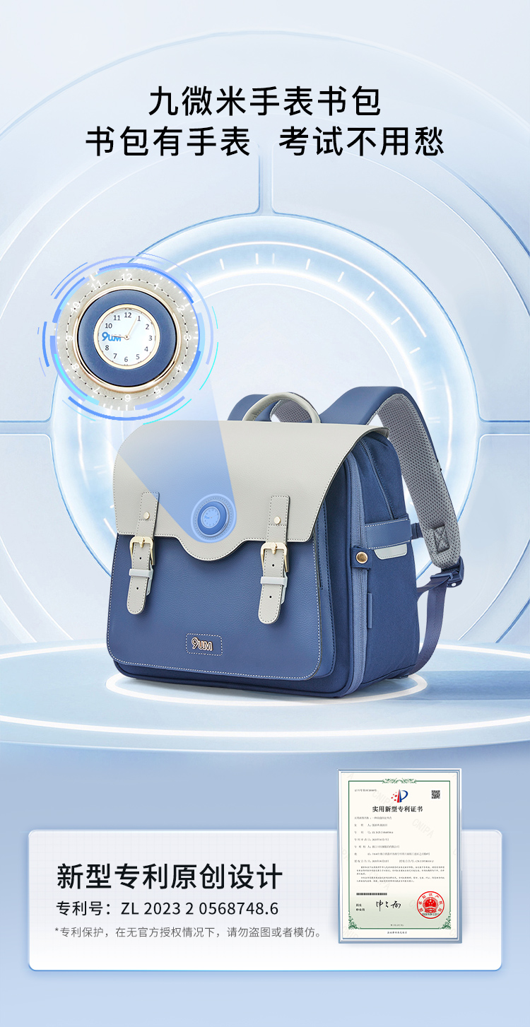 卡拉羊X九微米18L小学生1-4年级防下坠减负气囊缓震轻奢立体书包 凯旋门 U2174