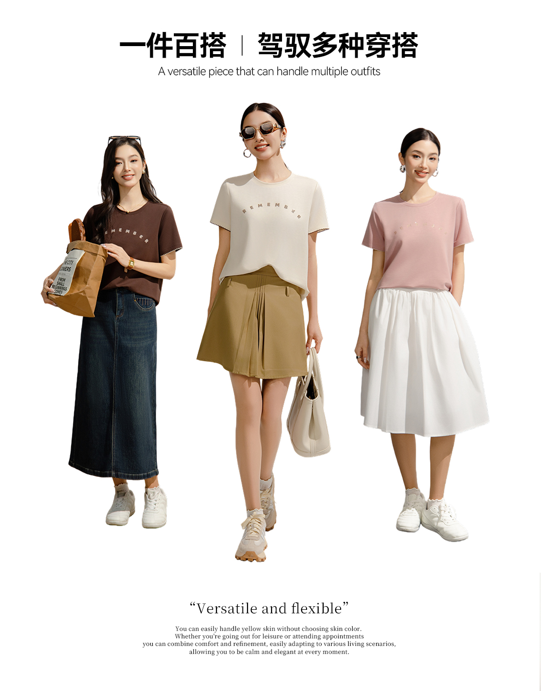 【品名】LS竹纤维女士时尚精致水钻字母半袖71095