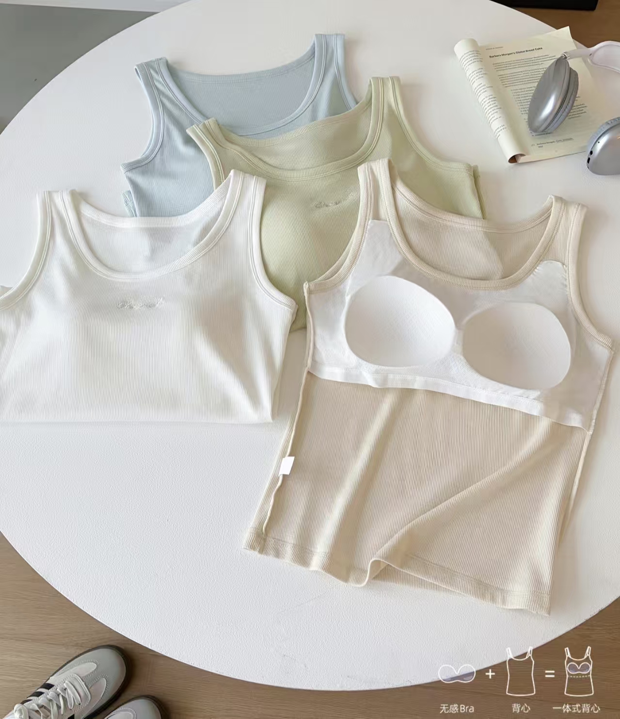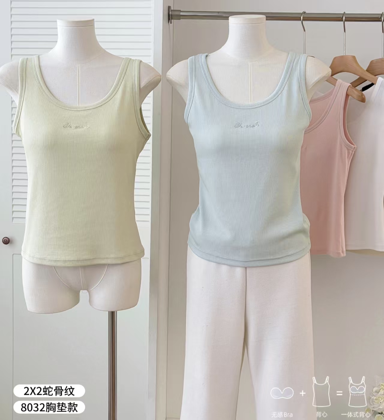 【品名】LS竹纤维女士时尚胸垫款条纹背心8032