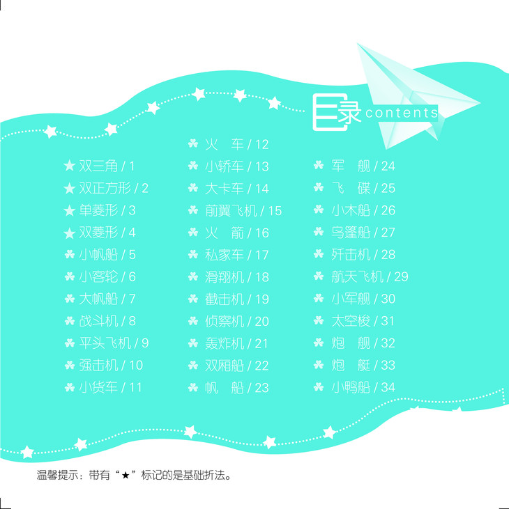 针对以上问题,本丛书书在提供清晰明了的折纸图示的同时,特别附带上了两套印有简单符号与折痕步骤的练习纸——“便捷折纸”。两套“便捷折纸”由8张基础折法练习纸、60张由易到难的交通工具折纸练习纸组成,学习时,只要按照“便捷折纸”上的序号以及符号提示,包你1分钟学会折纸!家长与孩子还能利用双份练习纸一起学折纸,享受亲子共折的乐趣!