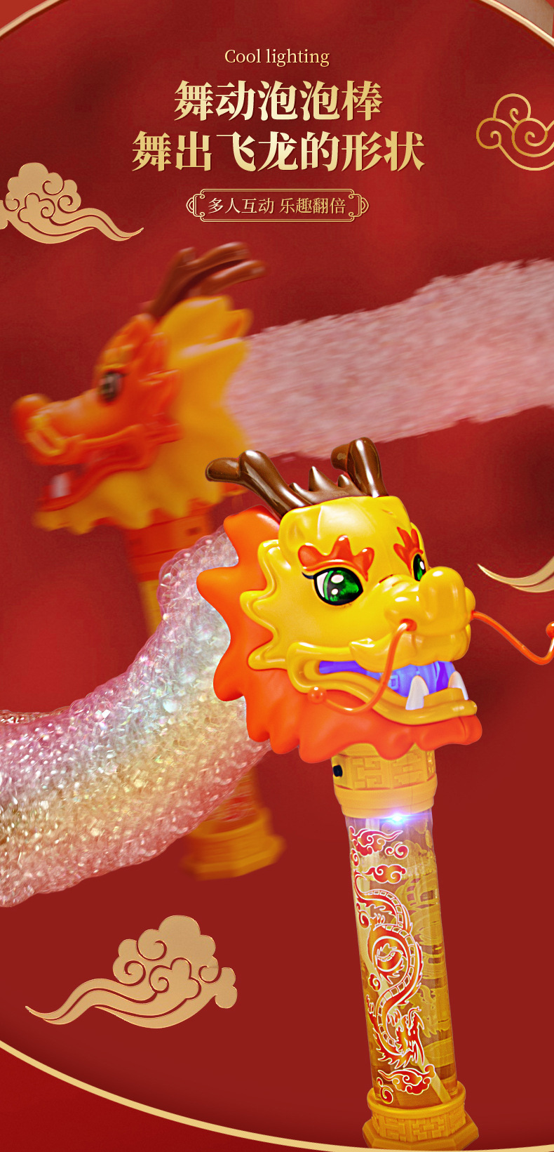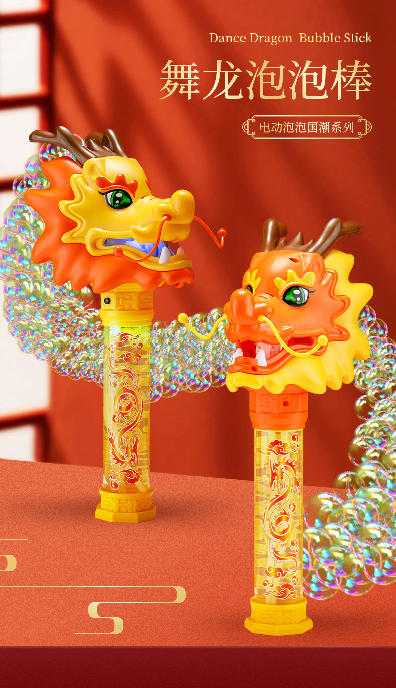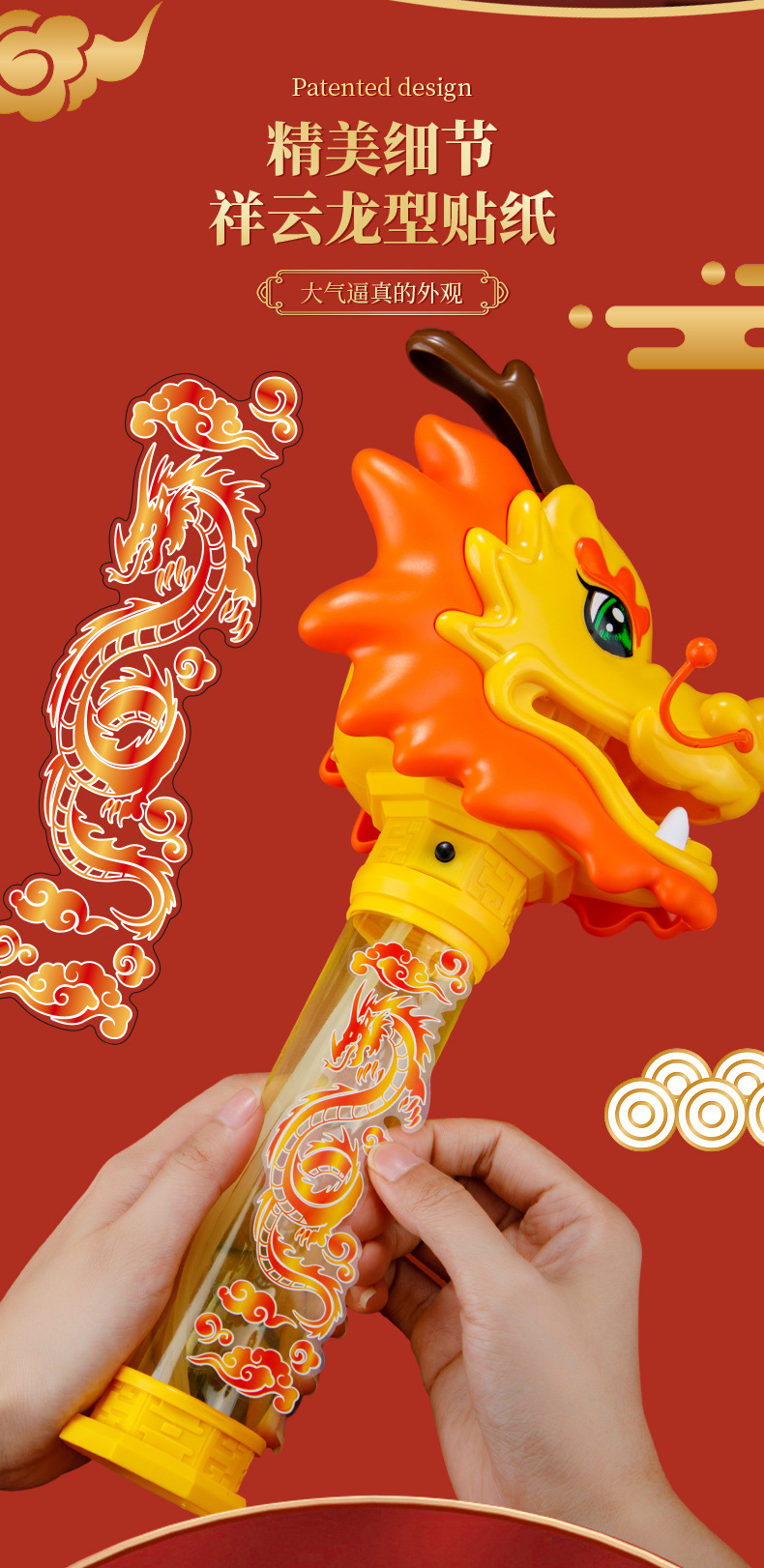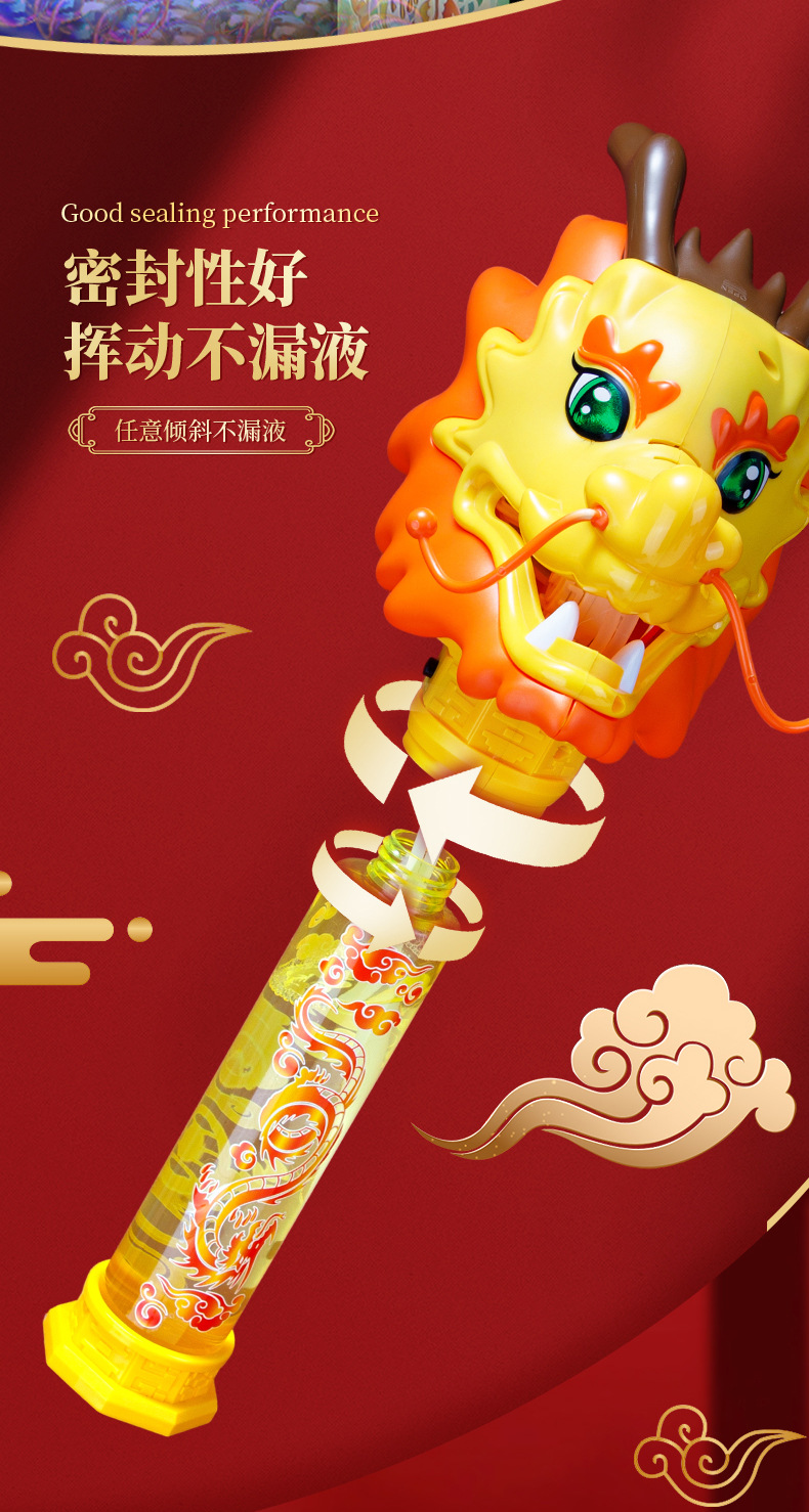 【一键出泡!快乐来的很简单】热卖舞龙泡泡棒儿童电动,全自动发光龙年泡泡机新年国粹玩具,流畅出泡 炫酷灯光 电动多孔设计