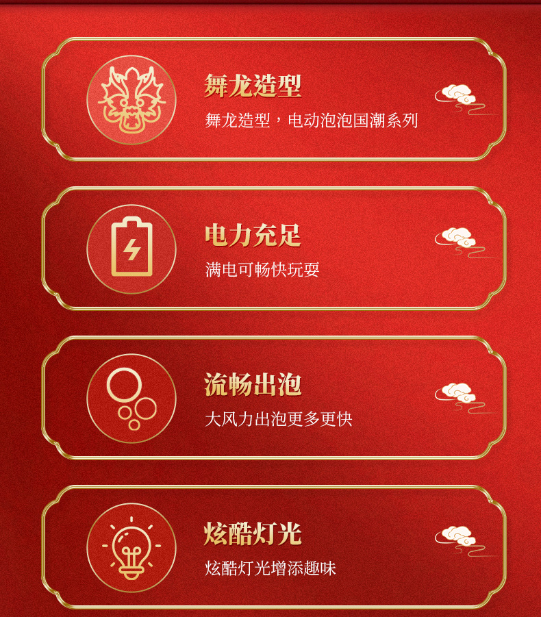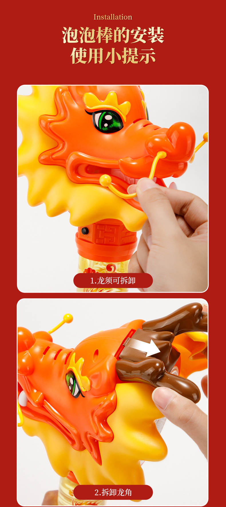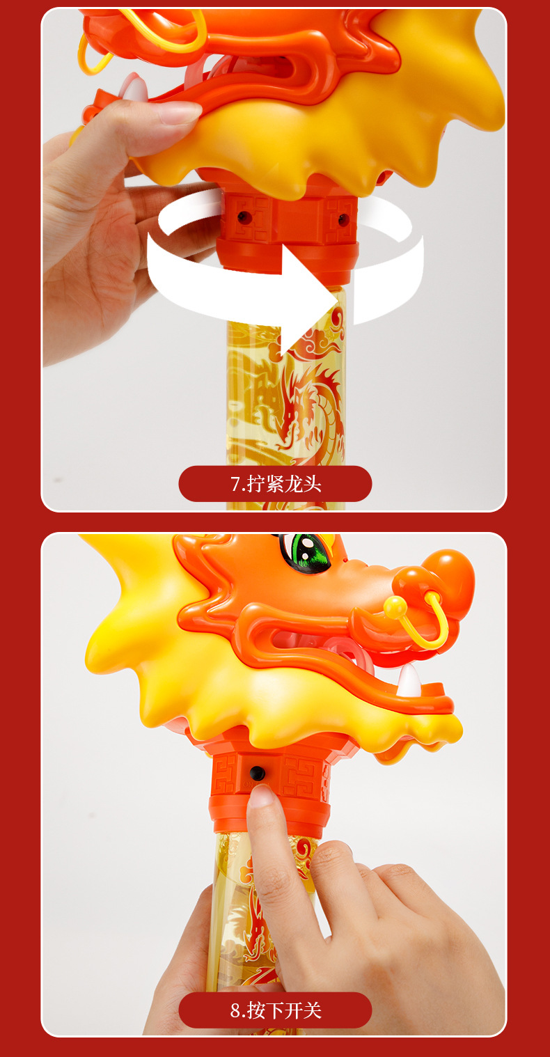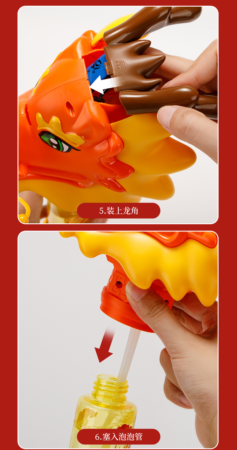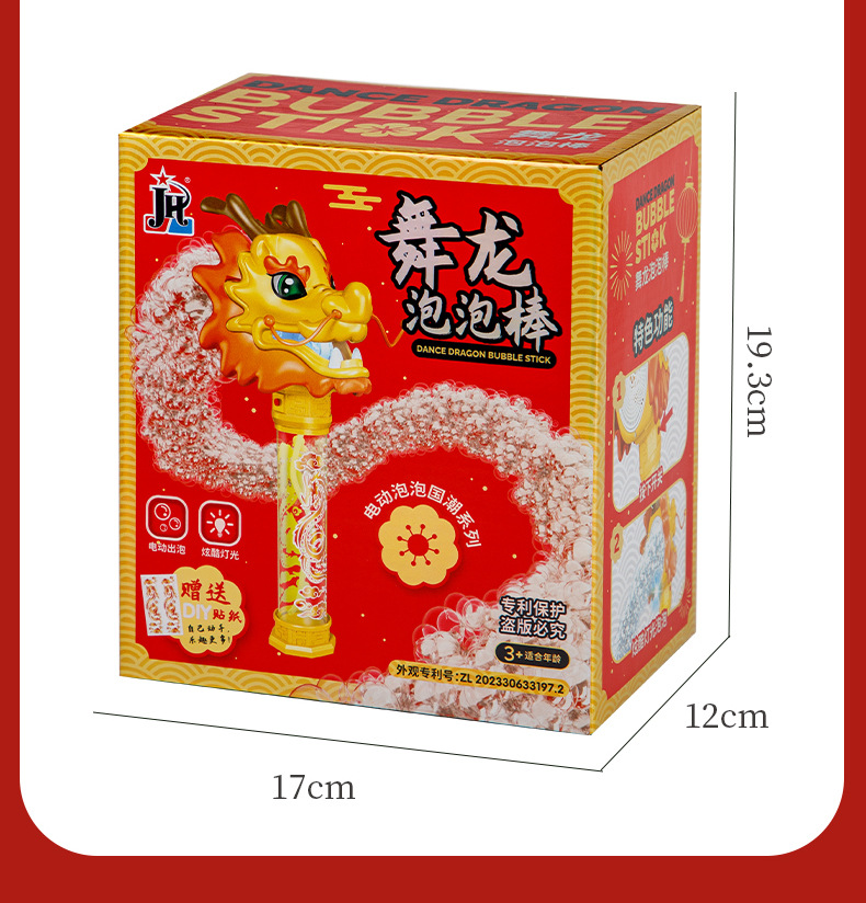 【一键出泡!快乐来的很简单】热卖舞龙泡泡棒儿童电动,全自动发光龙年泡泡机新年国粹玩具,流畅出泡 炫酷灯光 电动多孔设计