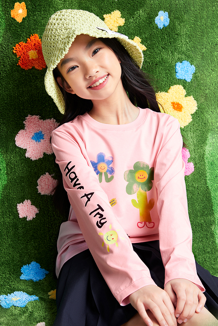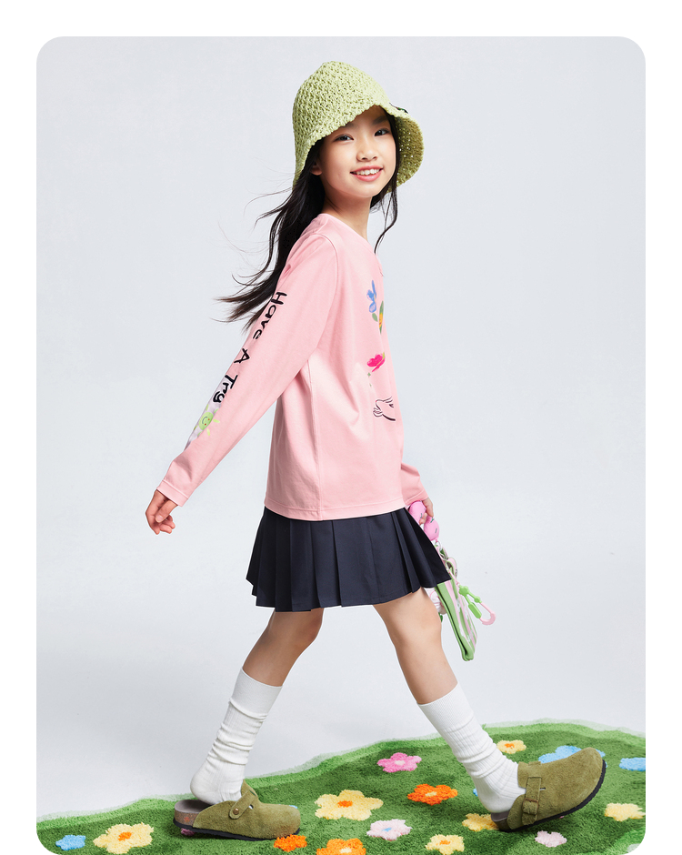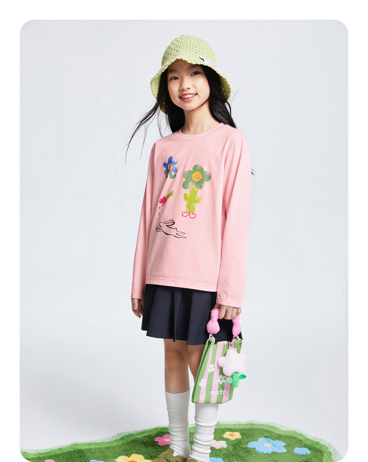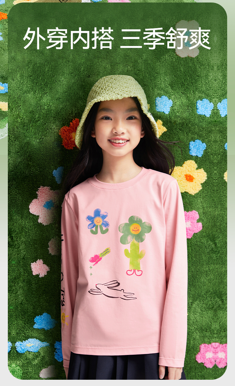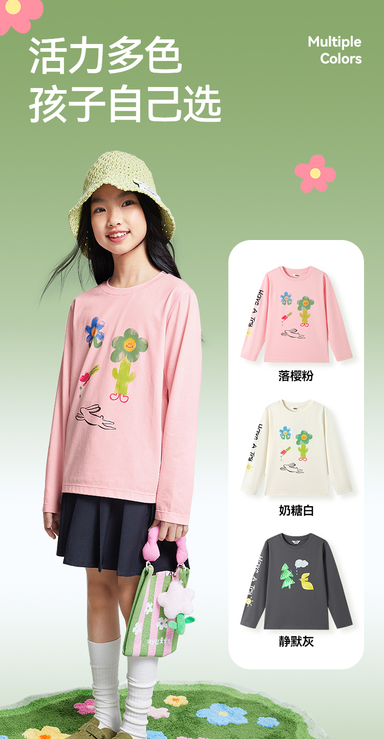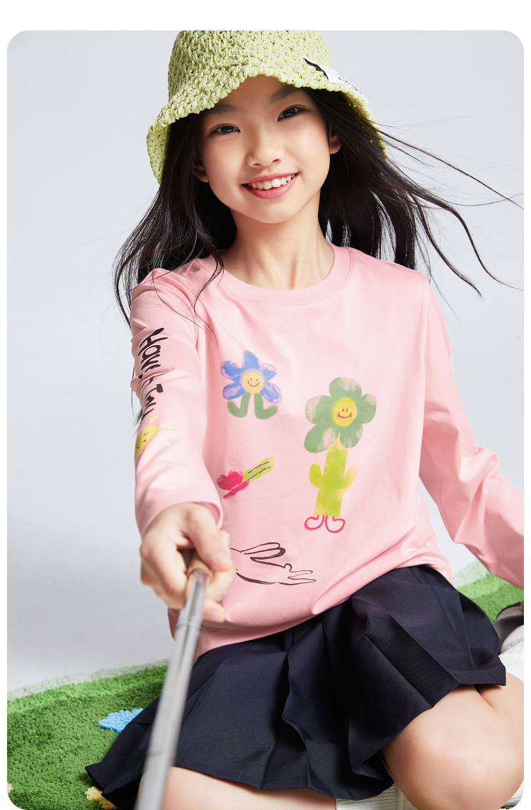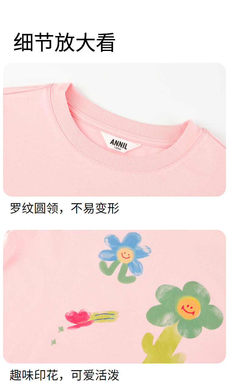 女童圆领SORONA长袖T恤春季新款安奈儿童装EG511011