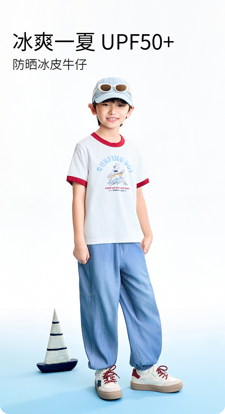 【实体店同款】男童全腰牛仔单裤夏季新款安奈儿童装AB626040