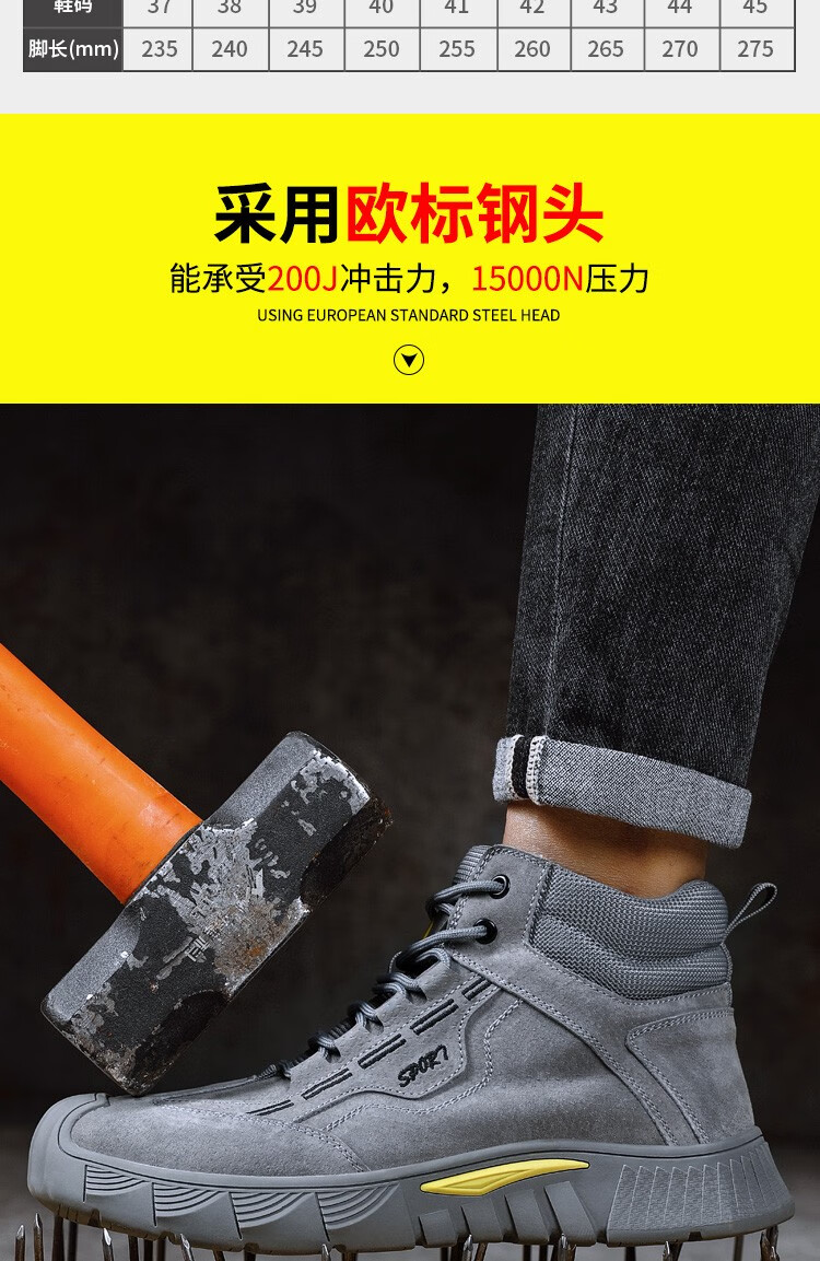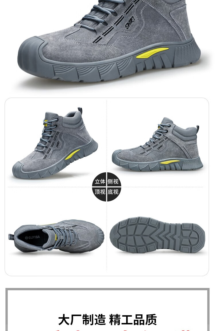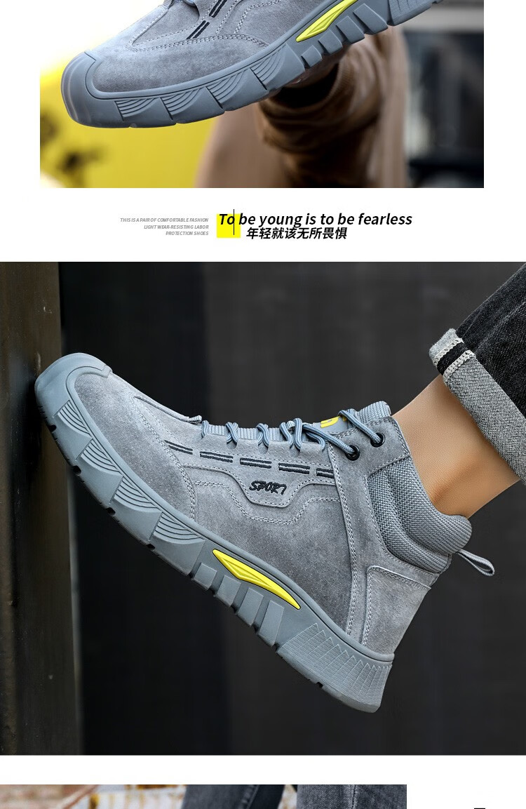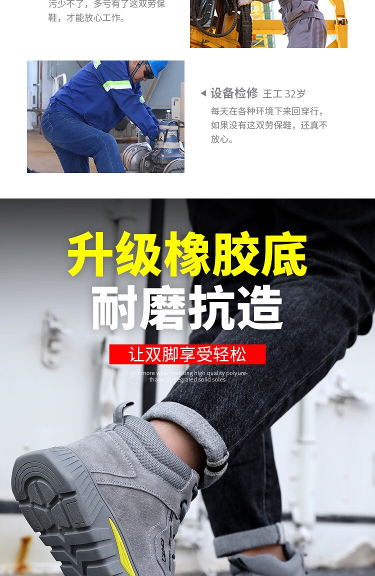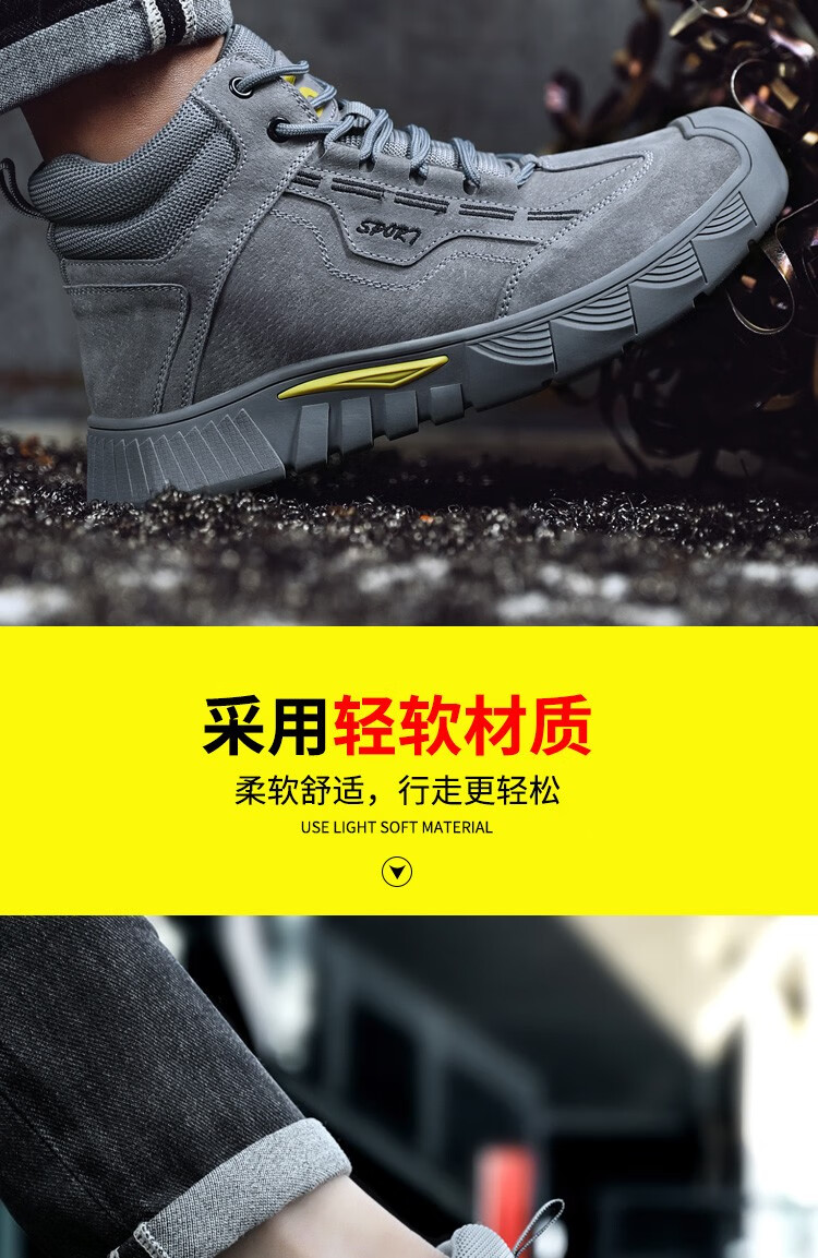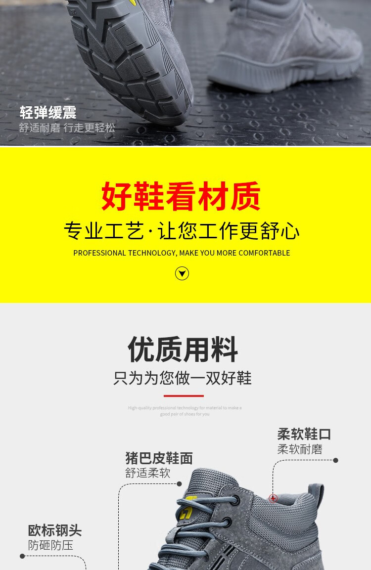 新款灰色高帮不加绒劳保鞋男防砸防刺钢包头猪皮四季款耐磨橡胶底舒适透气安全鞋工作鞋