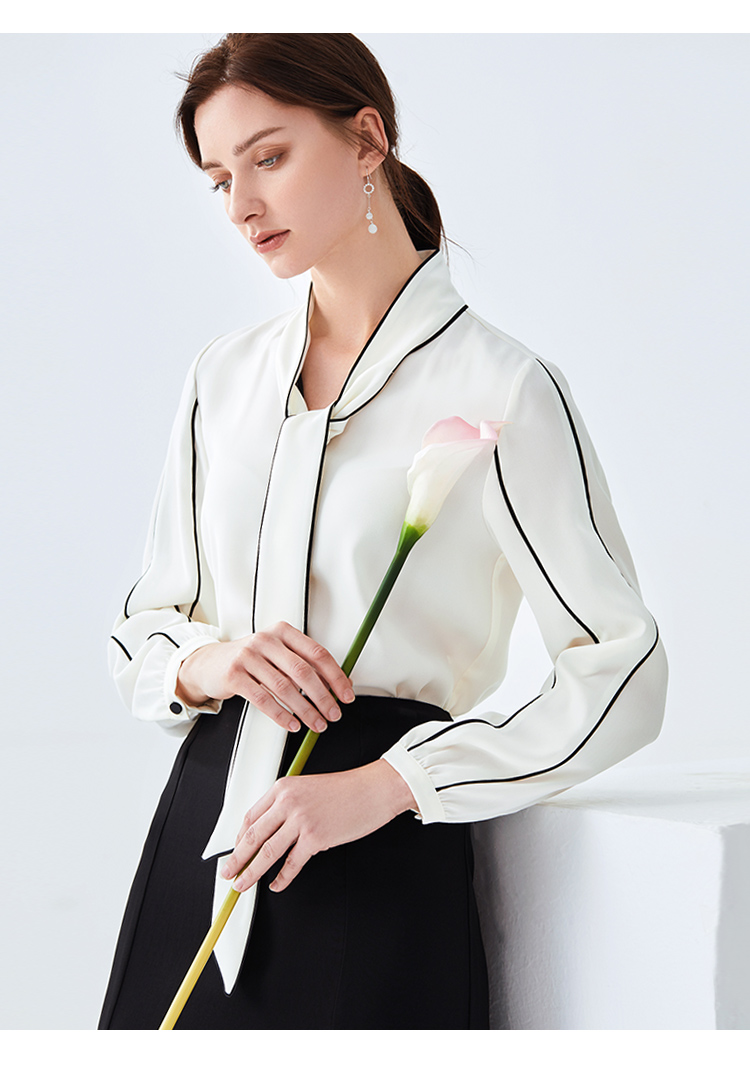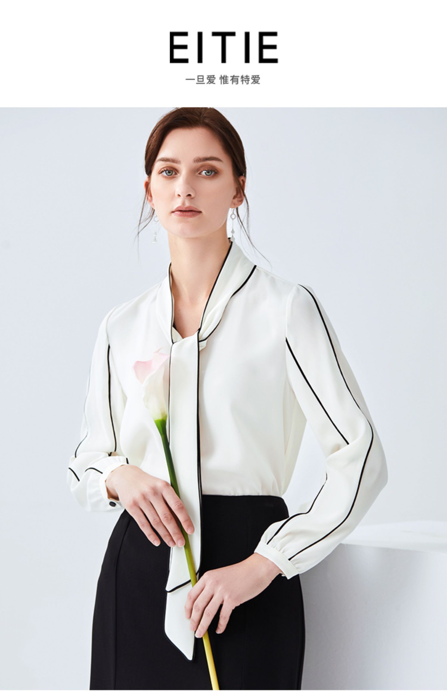 故障 EITIE爱特爱女装夏款时尚简约通勤职业系带长袖衬衫女上衣6113819
