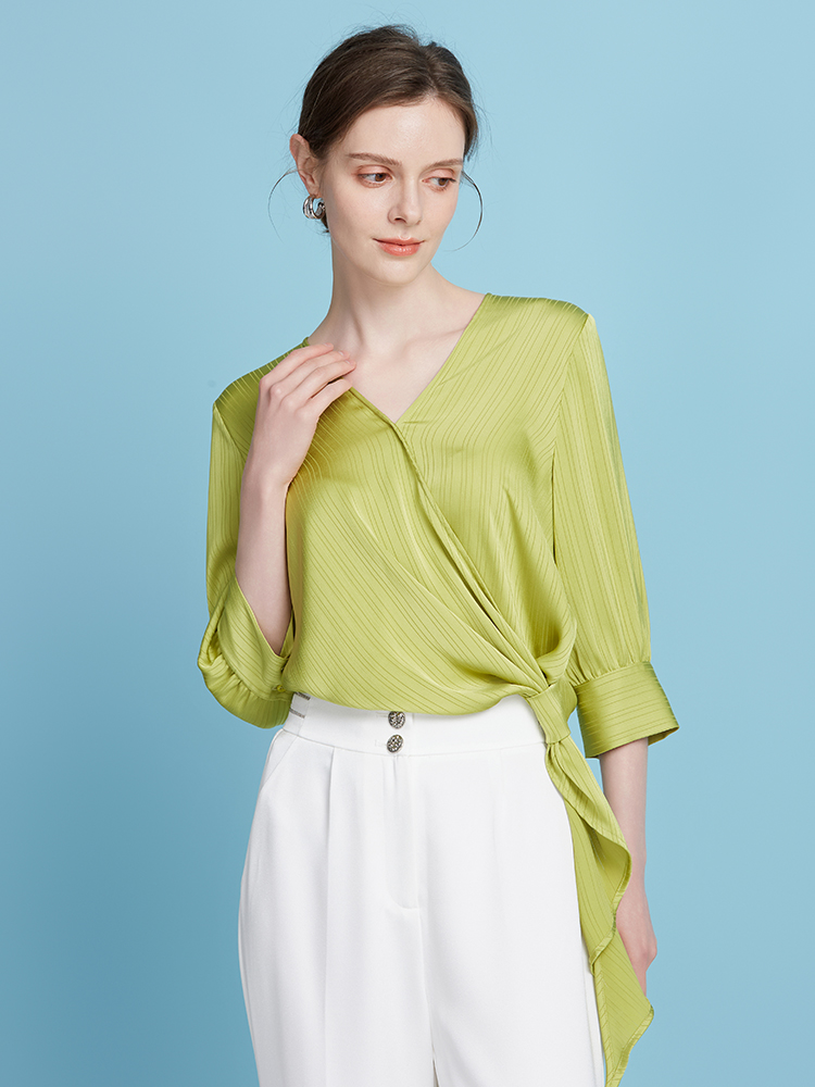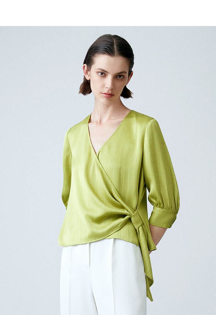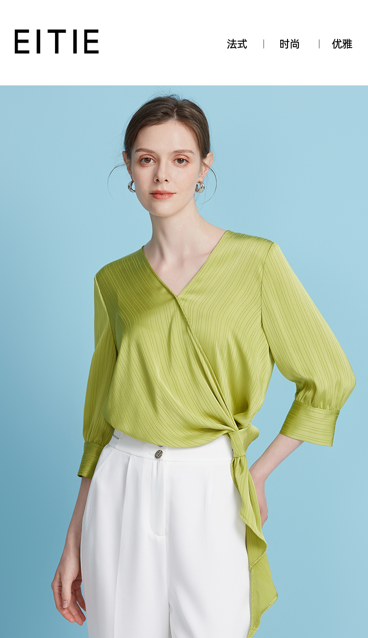 EITIE爱特爱春季新款设计感小众修身气质V领显瘦小上衣7713411