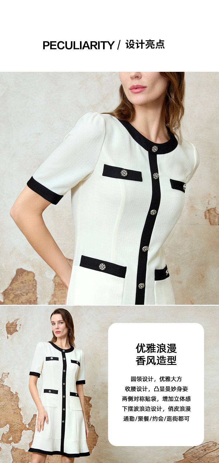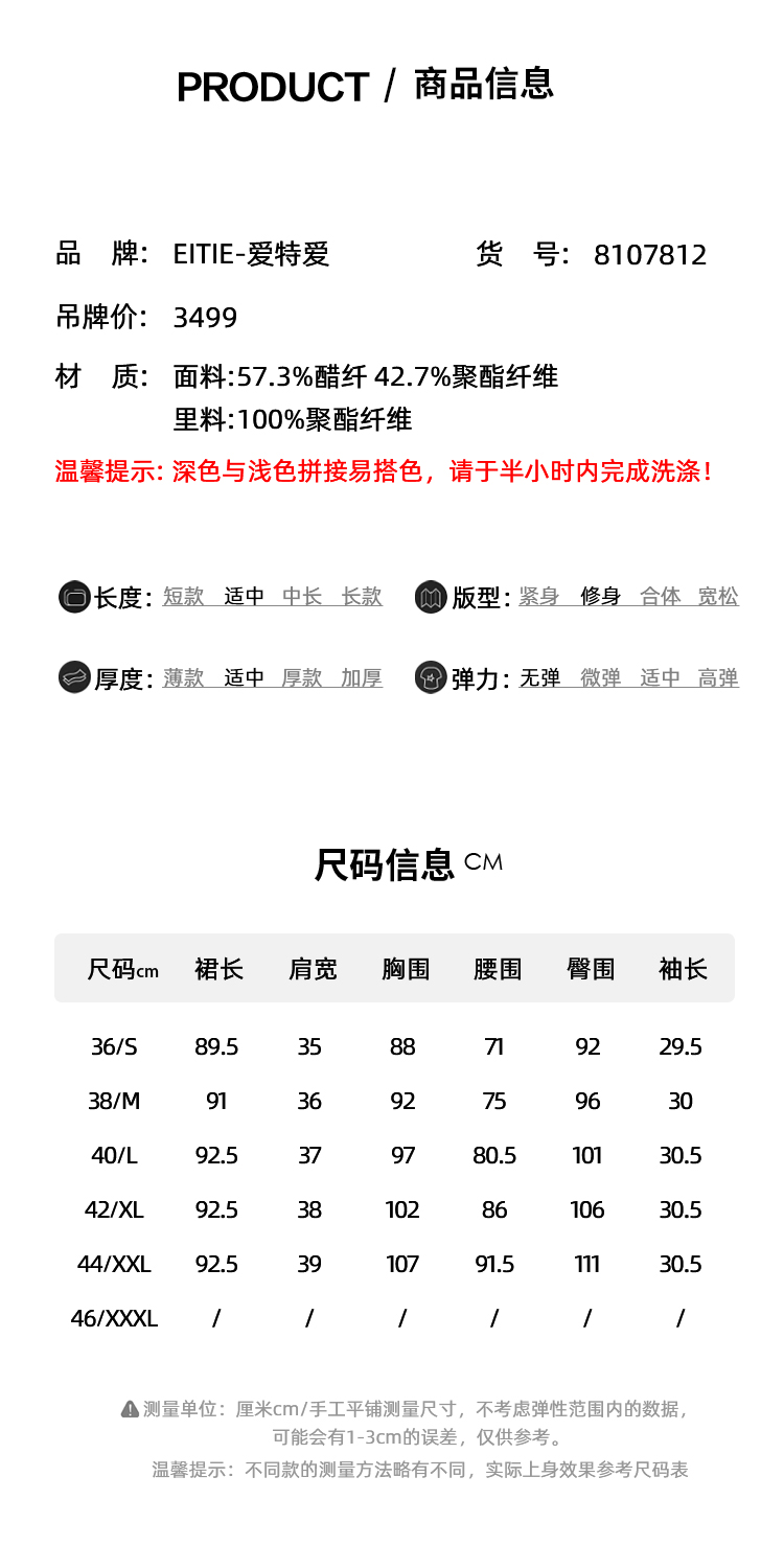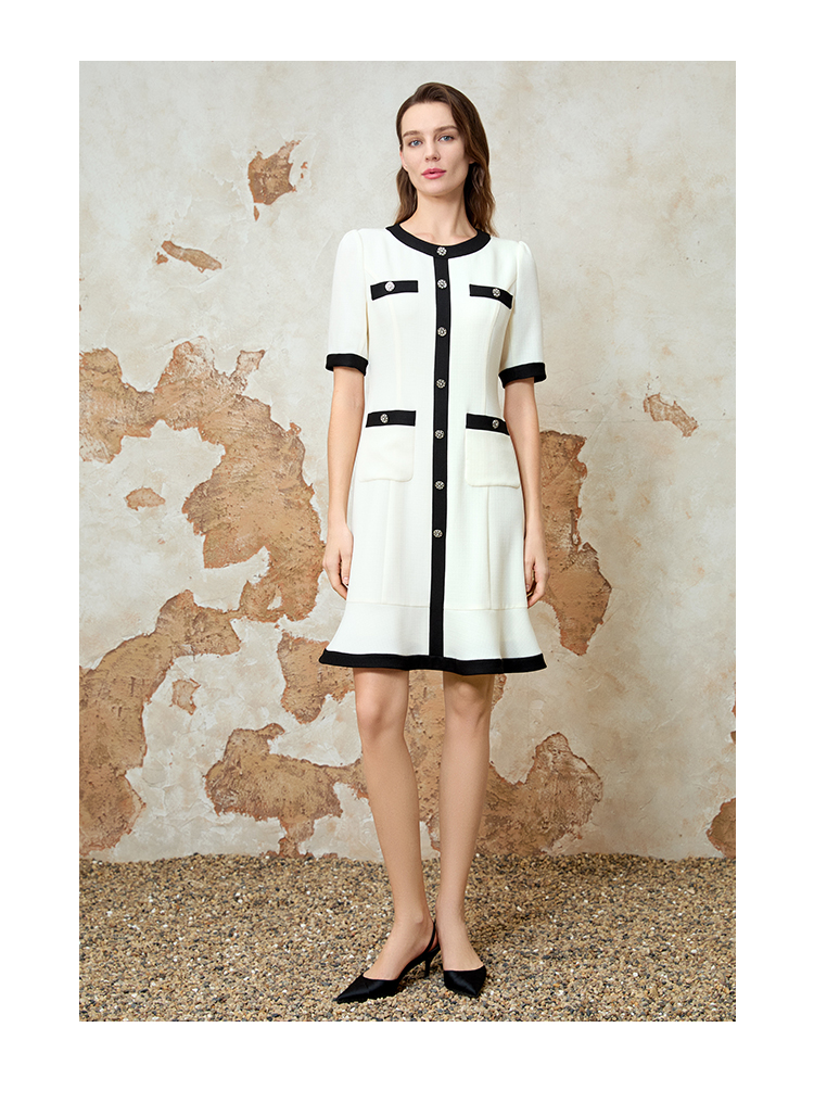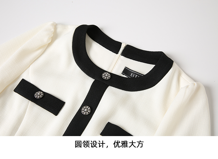 EITIE爱特爱气质小香风撞色显瘦优雅通勤连衣裙春季新款8107812