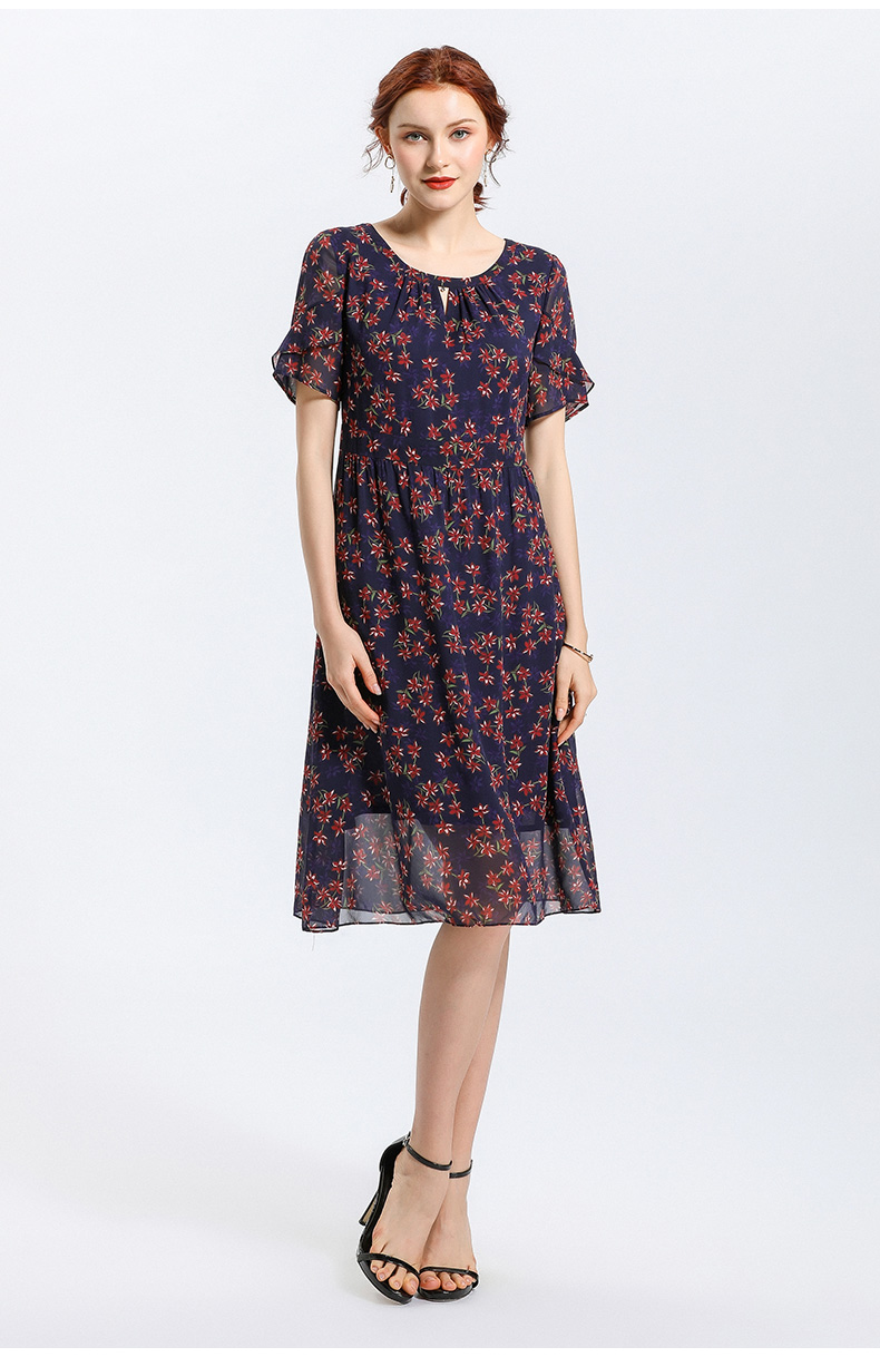乔万尼夏季女碎花修身桑蚕丝连衣裙时尚长裙子EN2E559