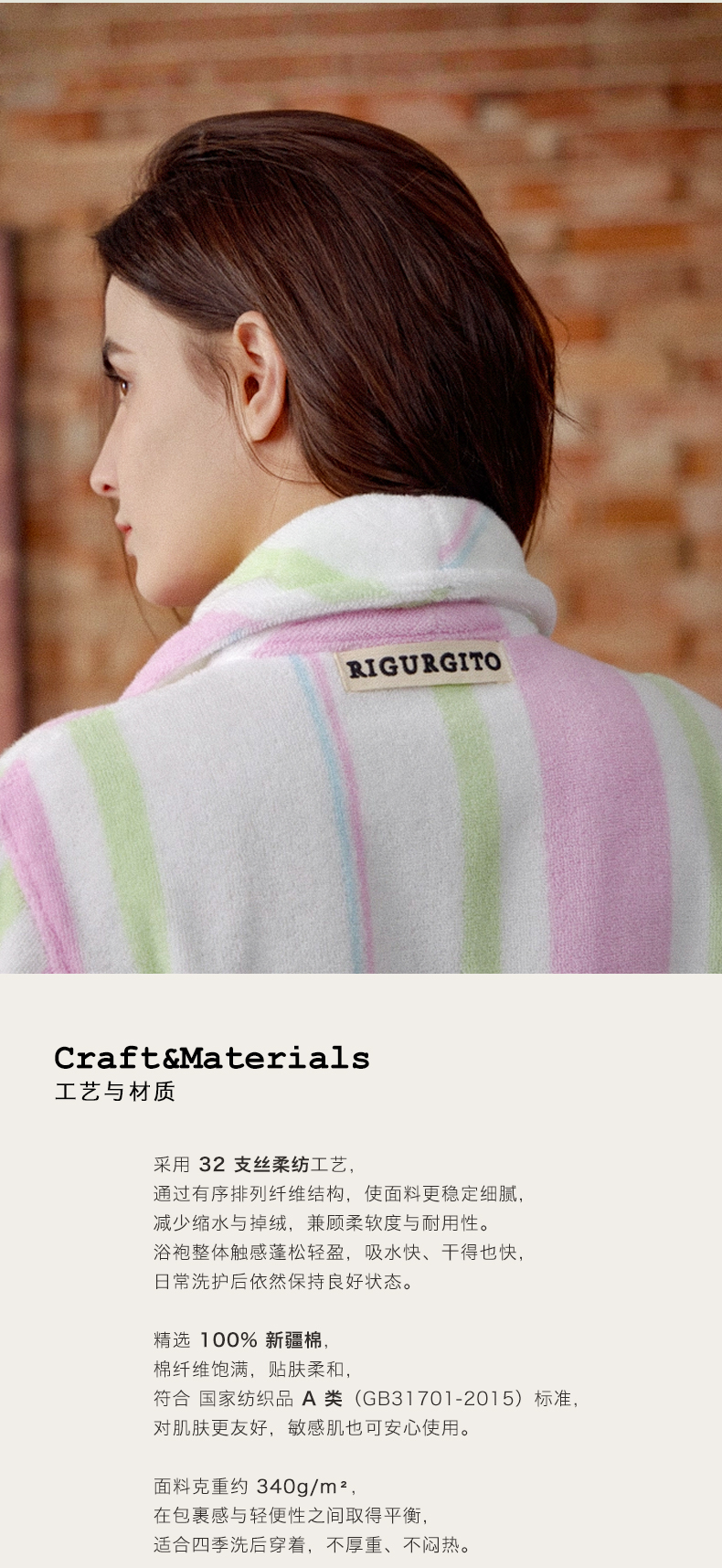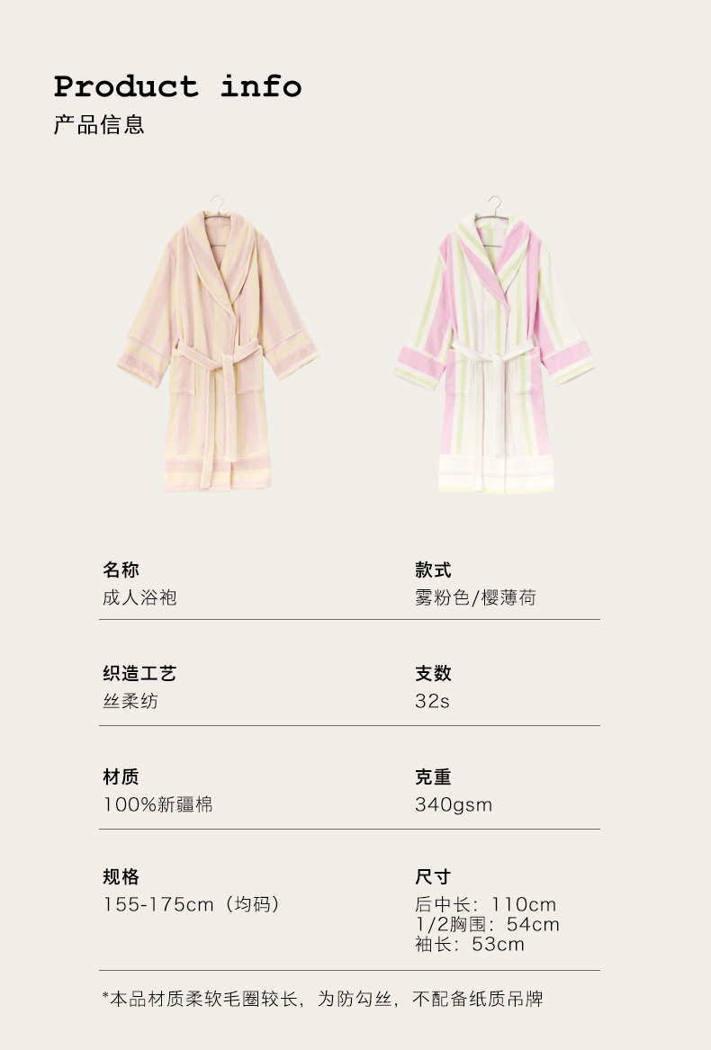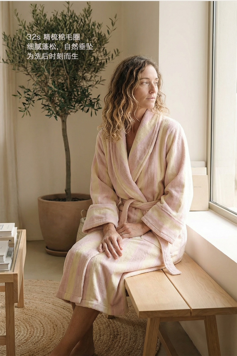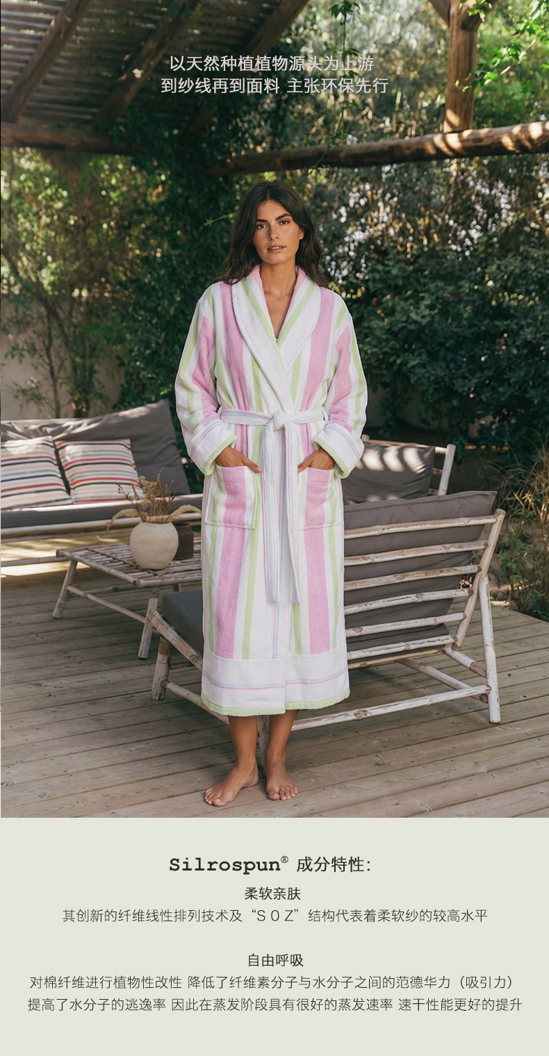 「浴袍」RIGURGITO 专利Silrospun®纯棉女款条纹浴袍 Ehand
