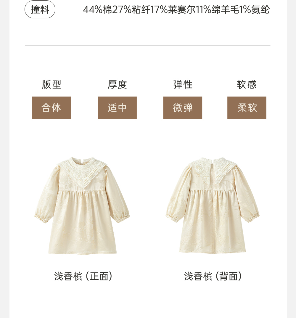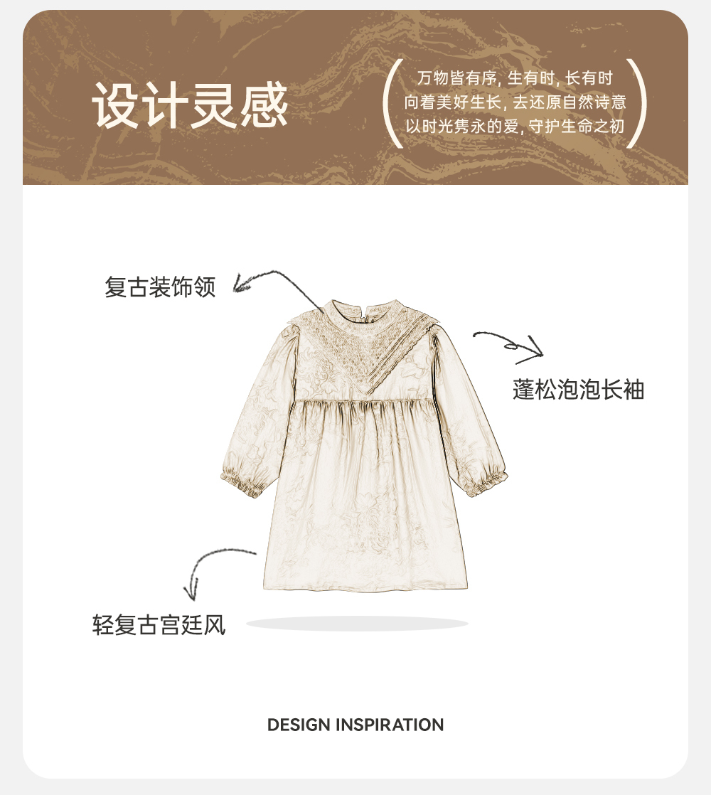 【高定系列】 英氏童装长袖连衣裙复古宫廷风桑蚕丝女宝春夏裙子