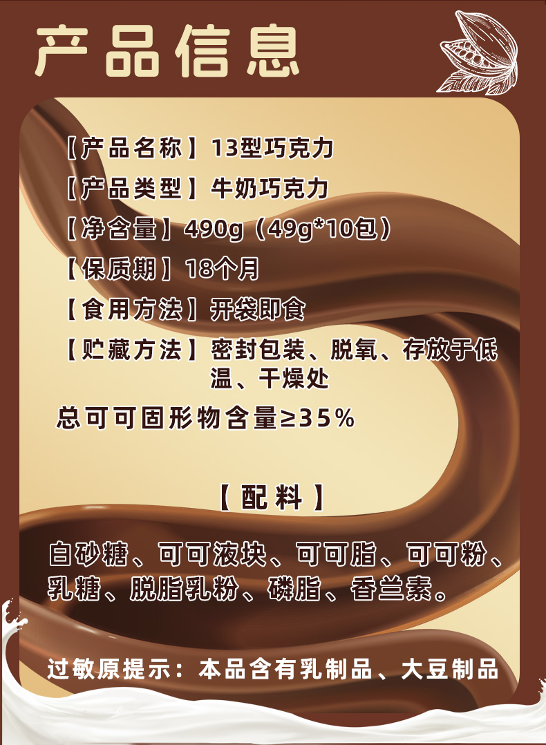 【醇厚浓香 入口丝滑】10型13型牛奶巧克力18型黑巧克力(3款可选)