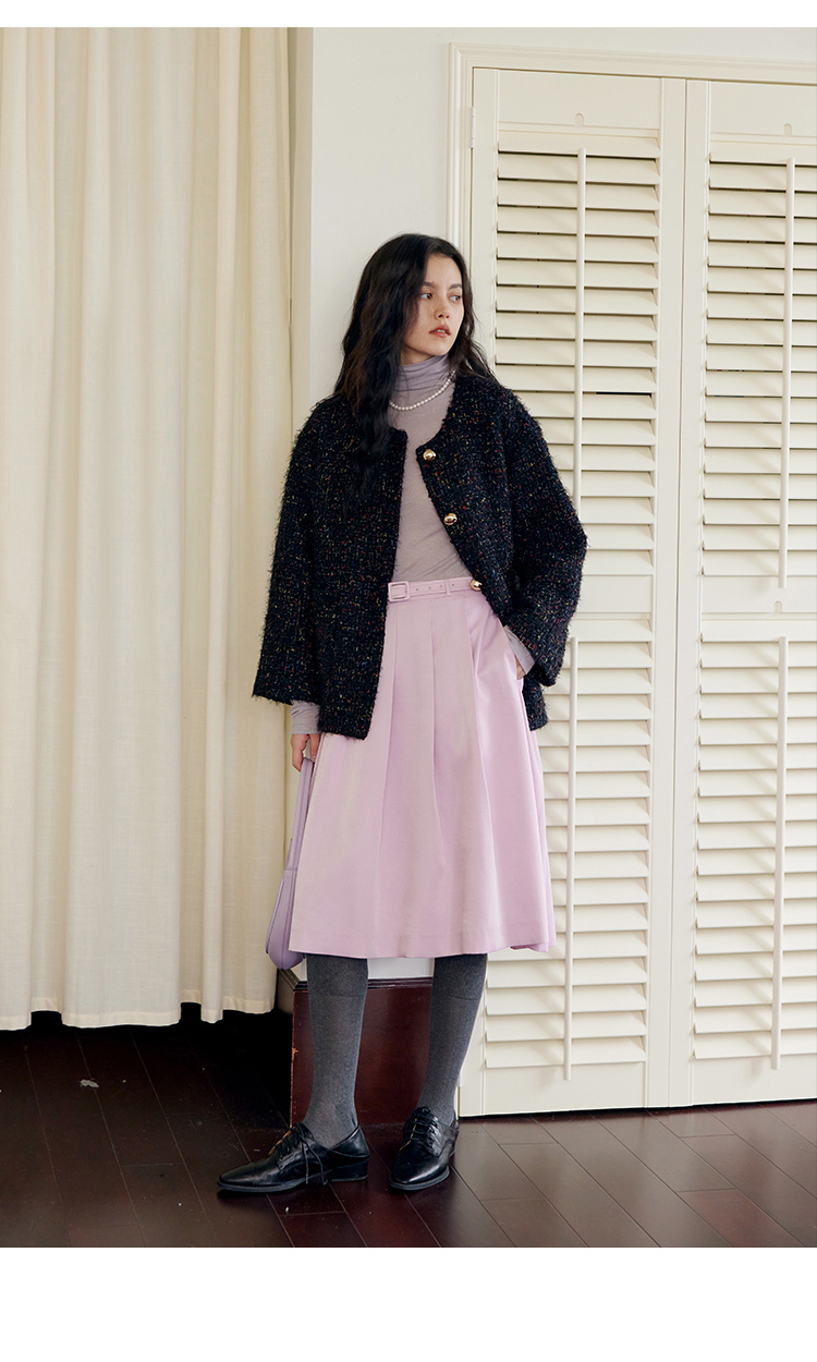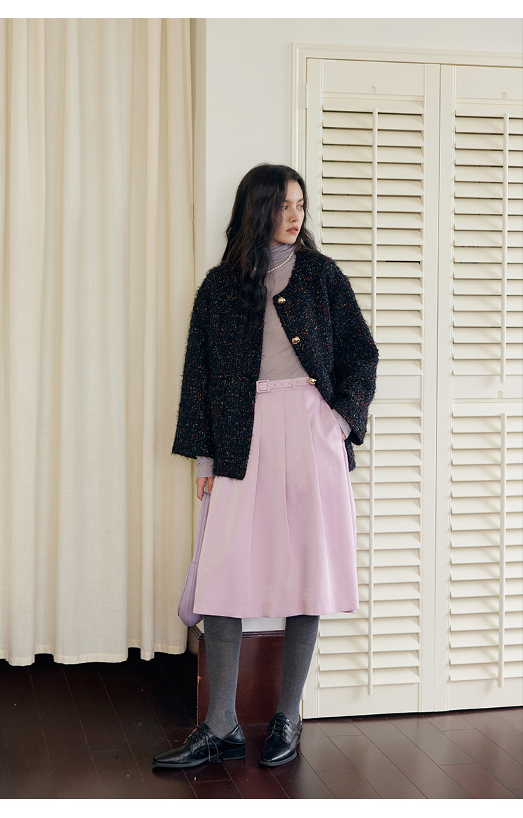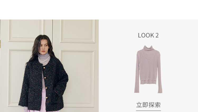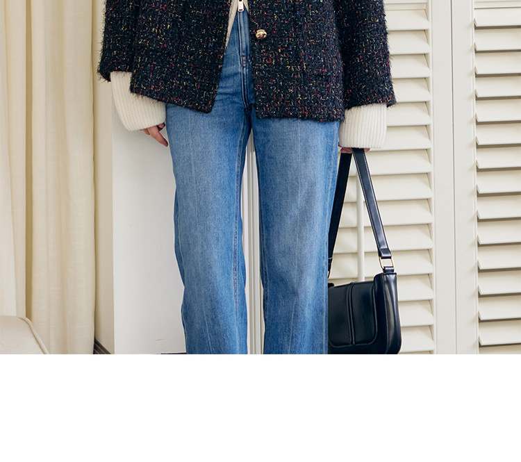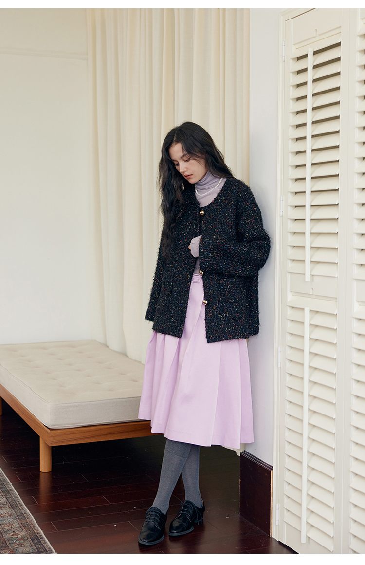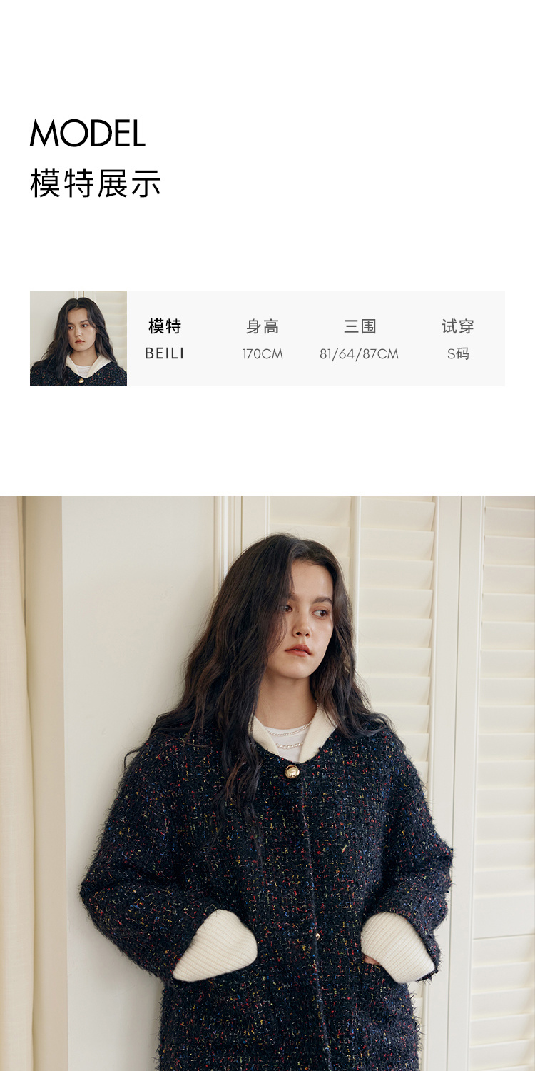 HeyDress花纱小香风外套女冬季圆领宽松显瘦粗花呢厚款黑色上衣