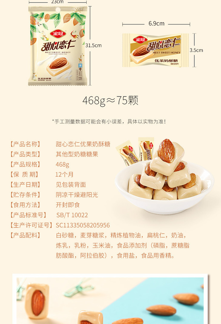 500g 散金冠杏仁奶酥 独立包装 酥脆可口