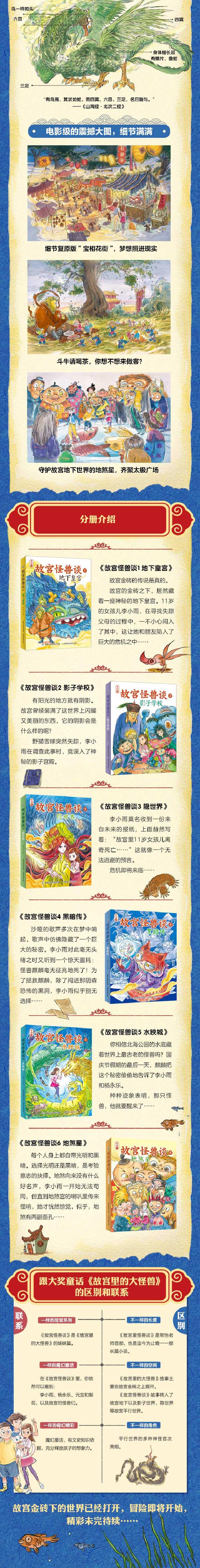 《故宫怪兽谈》是儿童文学作家常怡重磅新作,是一部以探索“地下故宫”和多个故宫平行世界展开的长篇魔幻童话。作品延续《故宫里的大怪兽》主人公李小雨的冒险,故事转向故宫地下世界和被遮蔽的陌生空间,在这3册图书中,为读者打造了两个脑洞大开的故宫平行世界:隐秘的水映城和梦幻的星光城。一些黑暗势力控制着这里,并威胁到地上世界的安全。但这里仍有善良的人们用力量和勇气保护、帮助几位闯入的小学生,她们终战胜了黑暗势力,也战胜了自我恐惧。