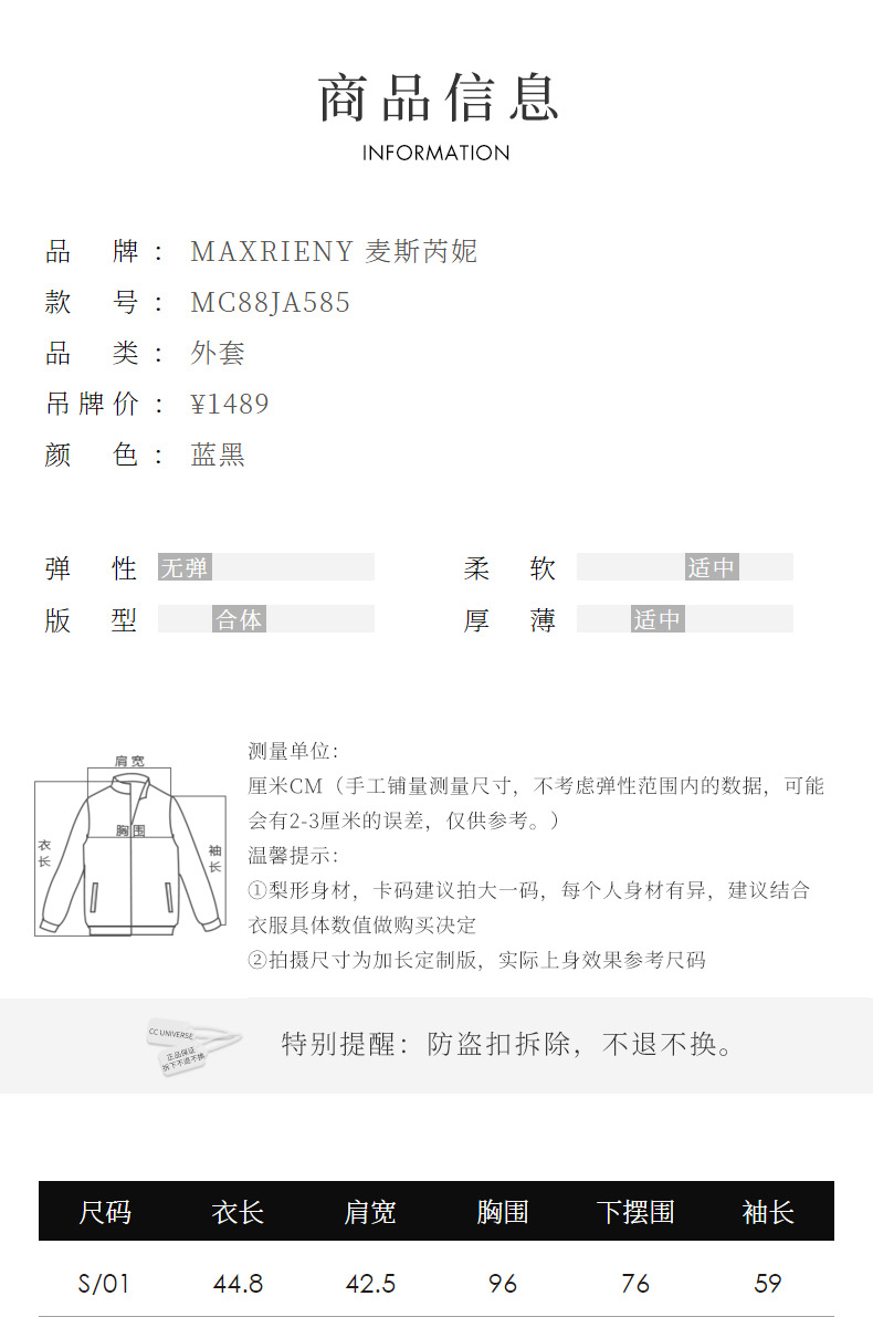 MAXRIENY率性复古风运动感外套截短款修身收腰上衣(货号:MC88JA585)