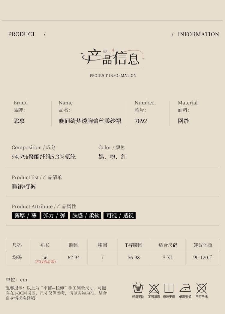 【轻情趣】霏慕 晚间绮梦透胸蕾丝柔纱裙 情趣内衣 情趣睡裙 7892