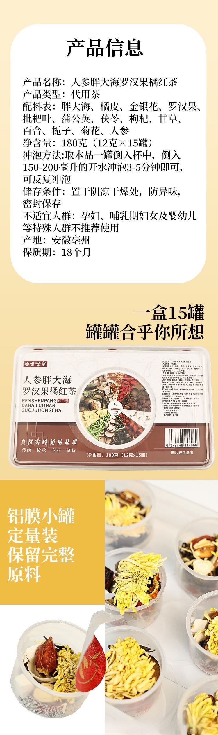 【甄选原料健康美味❗️清香沁人回味悠长】人参胖大海罗汉果橘红茶小罐茶亳州养生茶包花茶独立小包装。jb