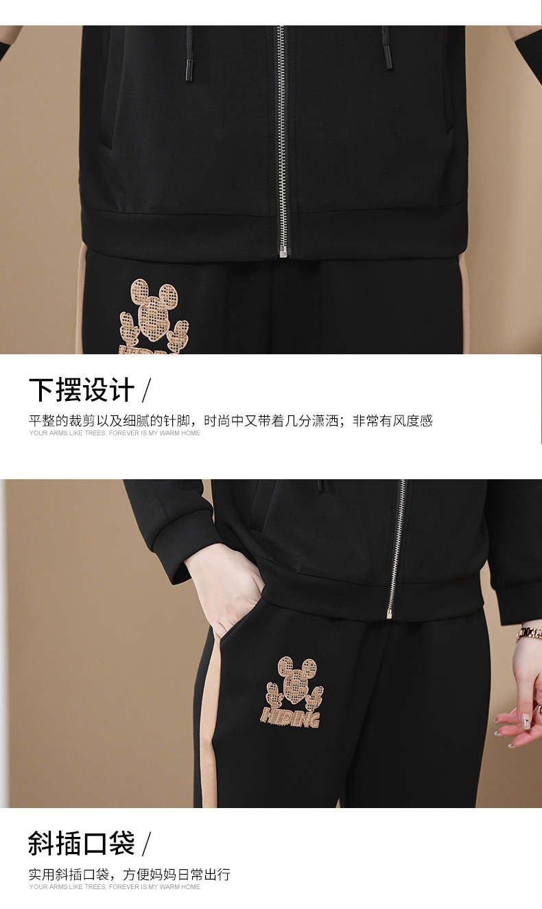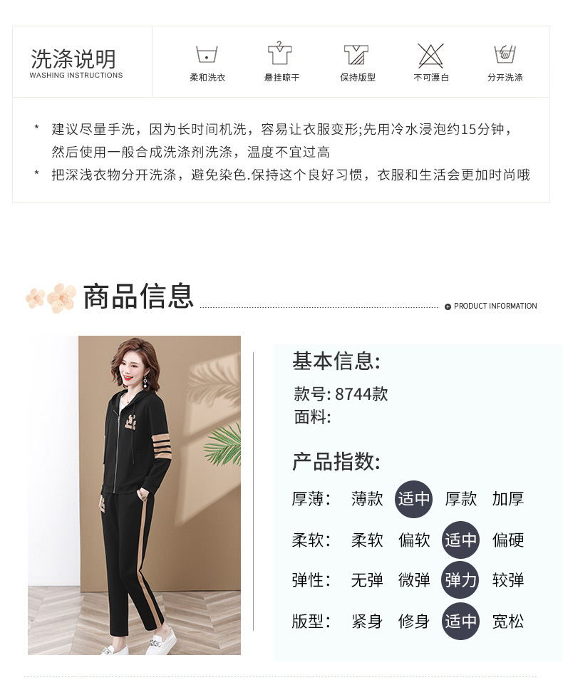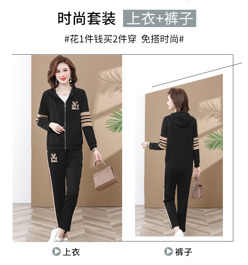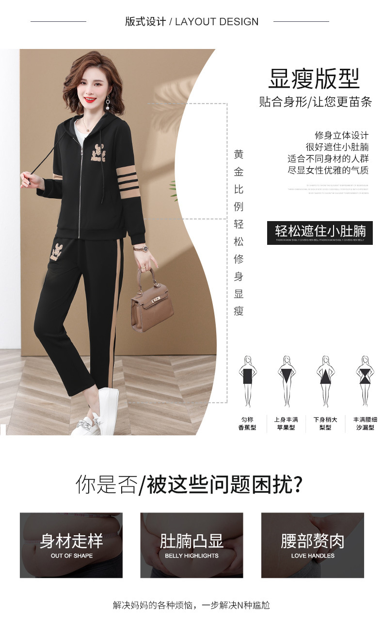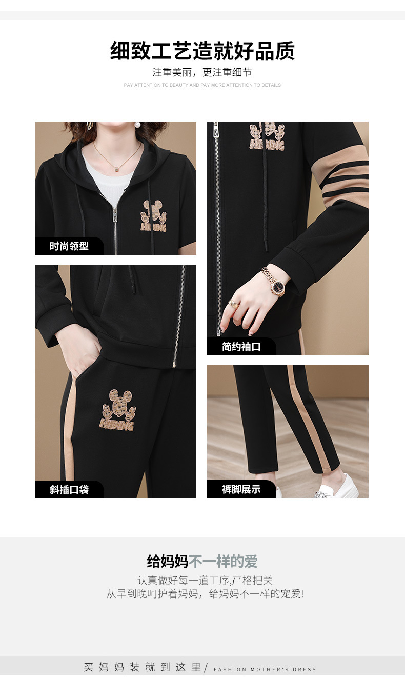 YCET212-8744 中年妈妈春装外套运动套装时尚减龄中老年女士春秋连帽大码两件套