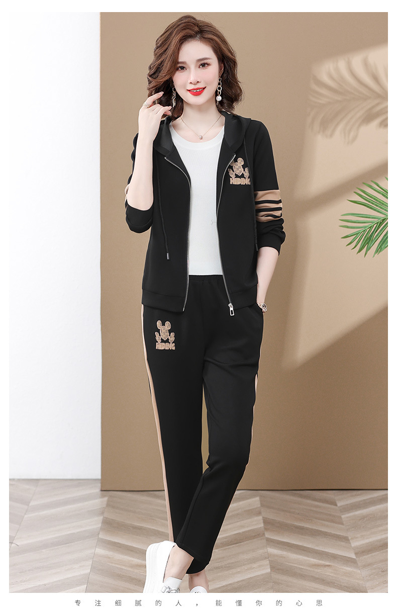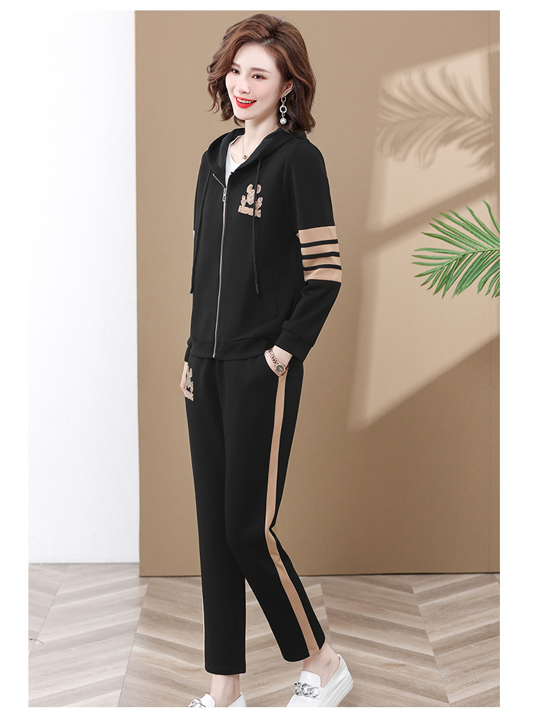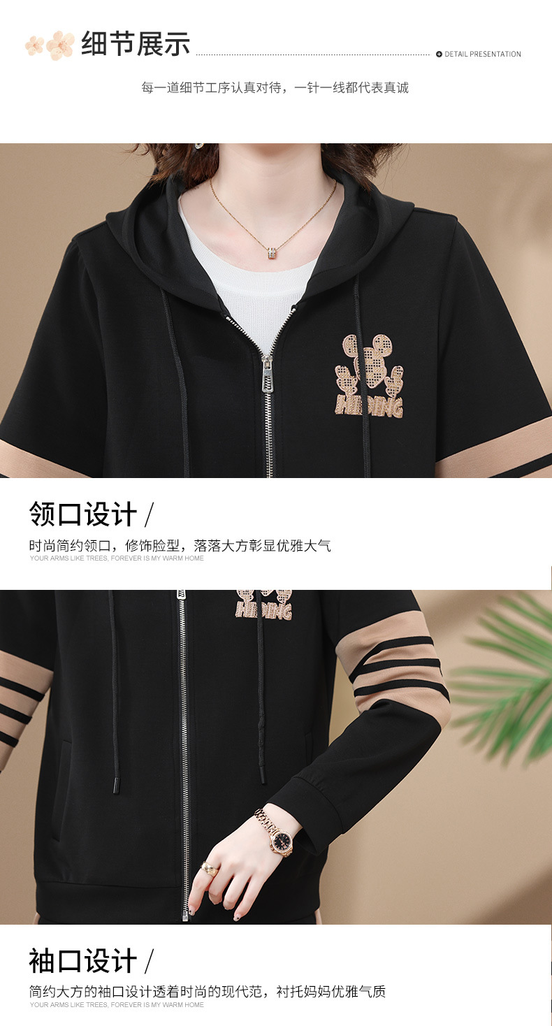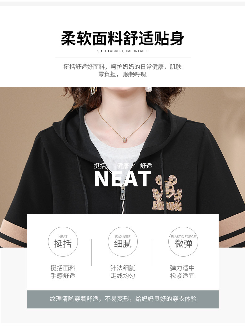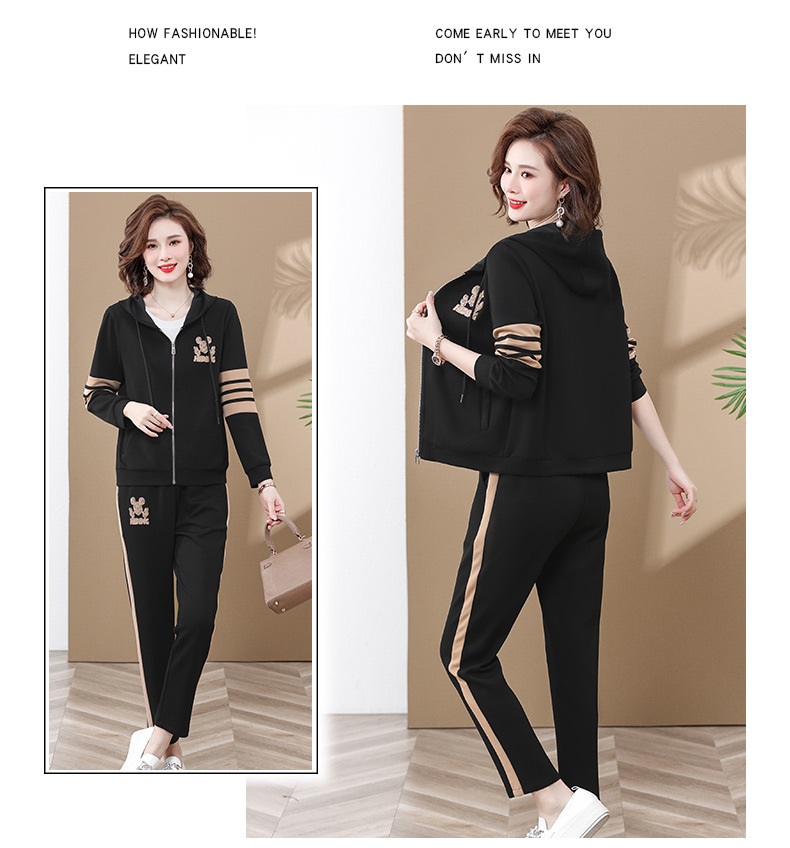 YCET212-8744 中年妈妈春装外套运动套装时尚减龄中老年女士春秋连帽大码两件套