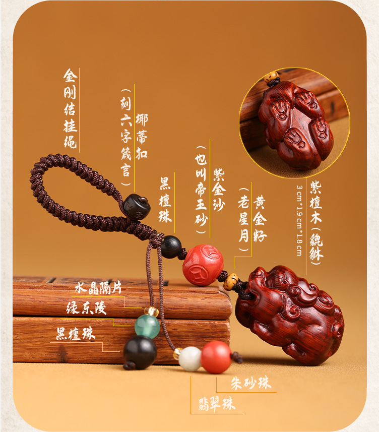 太清檀木貔貅汽车钥匙扣挂件