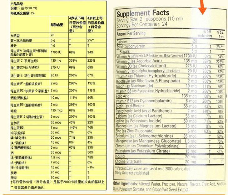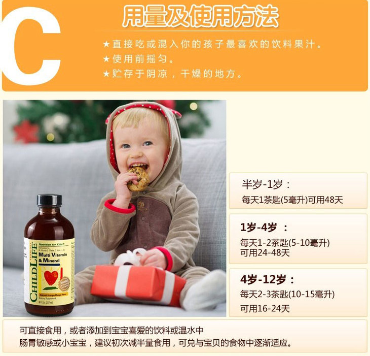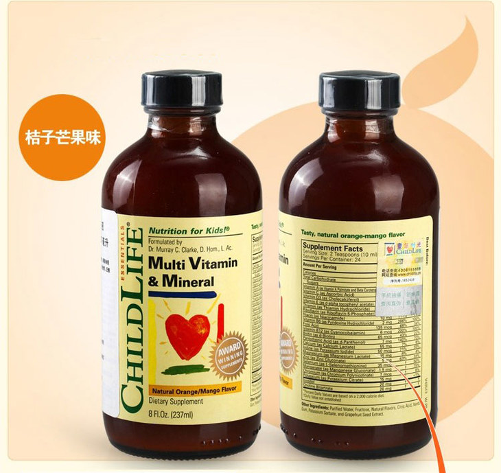 美国童年时光Childlife儿童23种复合维生素营养液237ml